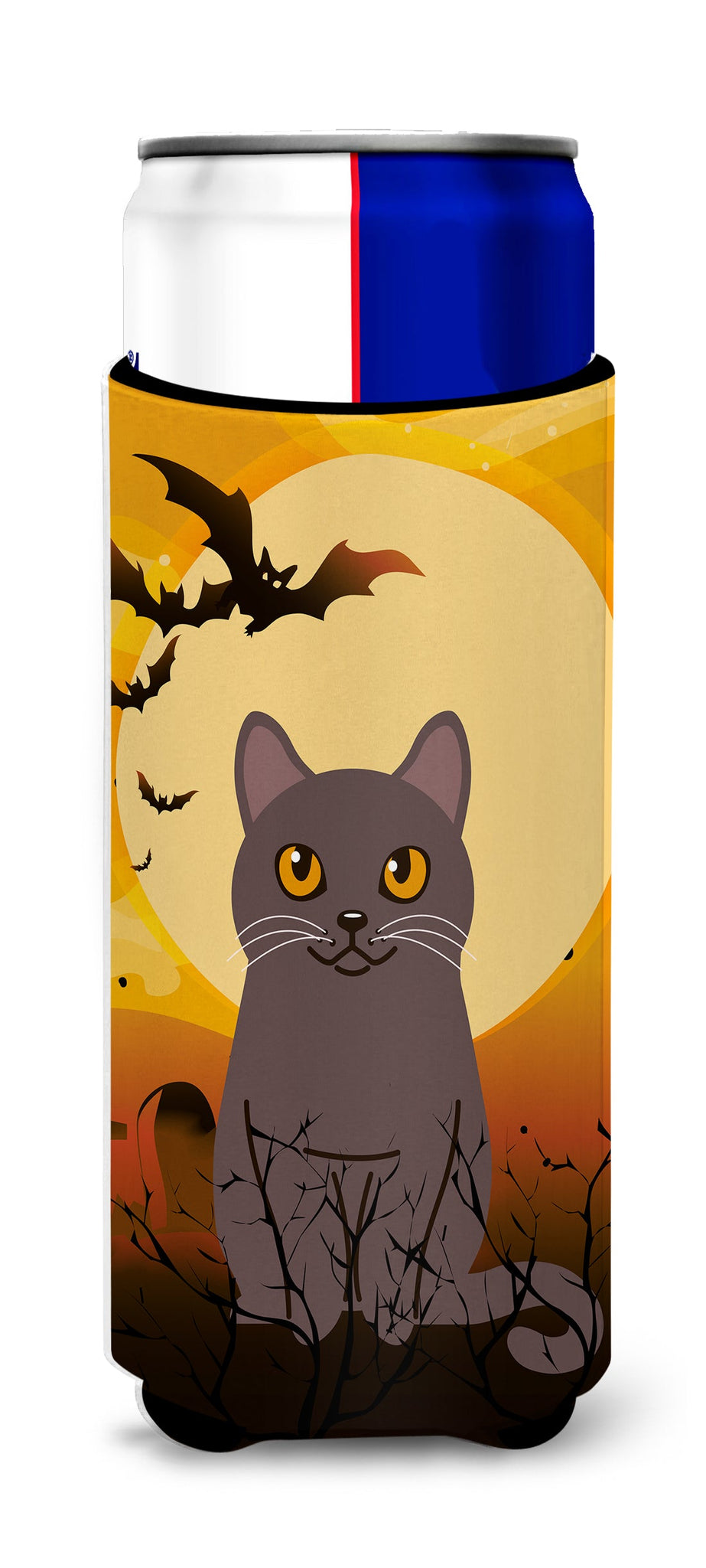 Decorate your space with our Halloween Chartreux artwork on a Slim Can Hugger. Elevate your beverage experience with our Slim Can Huggers, uniquely designed to fit a variety of your favorite 12 oz slim cans. Perfectly suited for Michelob Ultra, Starbucks Refreshers, Heineken Light, Bud Lite Lime, Dry Soda, Coors, Resin, Vitaminwater Energy, and Perrier Cans, our huggers ensure your drink stays refreshingly cool. The feature that sets our can huggers apart is the striking full-color artwork, exclusively created by one of our talented artists. It adds a touch of individuality and style to your drink, making it easier to identify in a crowd. A unique blend of practicality and flair, these huggers are an absolute must-have at any gathering. Our can huggers are not just beautiful but also incredibly durable. The design won't fade or peel off, and they can be safely cleaned in a washing machine. These collapsible beverage insulators are easy to store and transport, making them perfect for all occasions. Enjoy your drinks in style and comfort with our exceptional Slim Can Huggers.