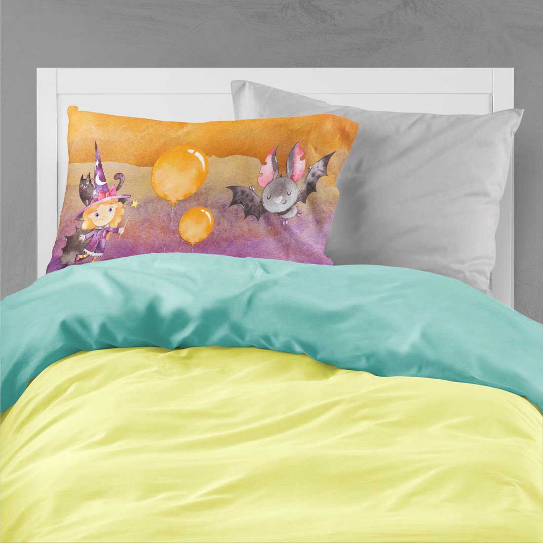Halloween Little Witch and Bat Fabric Standard Pillowcase – Artistic Decorative Front, White Back BB7458PILLOWCASE