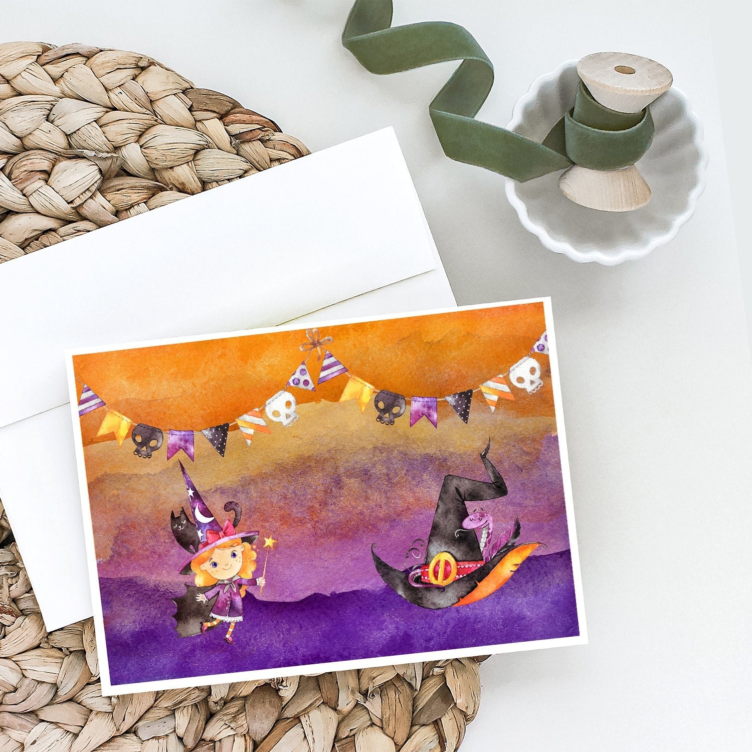 Halloween Little Witch Party Greeting Cards - Blank Note Cards – 8-Pack of Artist-Designed Cards with Envelopes