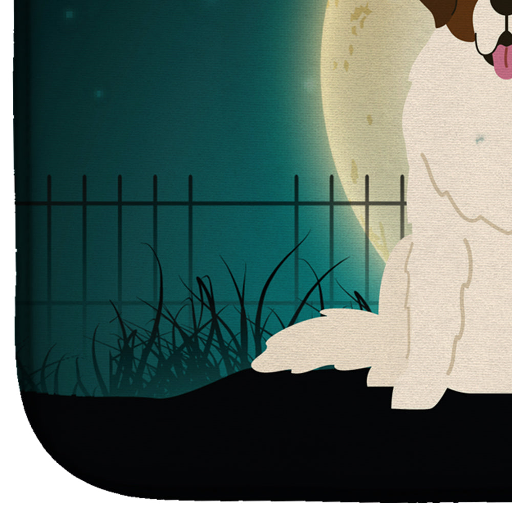 Decorate your space with our Halloween Moscow Watchdog artwork on a Dish Drying Mat. Say goodbye to messy countertops and soggy dish towels with our innovative dish drying mat. Our high-quality dish drying pad is designed to keep your countertops dry while offering a stylish and efficient solution. Whether you're air drying dishes, glasses, stemware, silverware, pots, pans, bottles, or even fruits and vegetables, our dish mat is the perfect choice. The 14 inches x 22 inches size fits most counters and dish drying racks, and the non-slip design ensures stability. Made with water-absorbent polyester and a polyurethane foam insert, our dish drying mat is not only functional but also durable. It's machine washable and printed in the USA for long-lasting use. The beautiful artwork adds flair to your kitchen decor, making it a perfect housewarming gift or present for any occasion. Upgrade your kitchen experience with our absorbent and versatile dish drying mat.