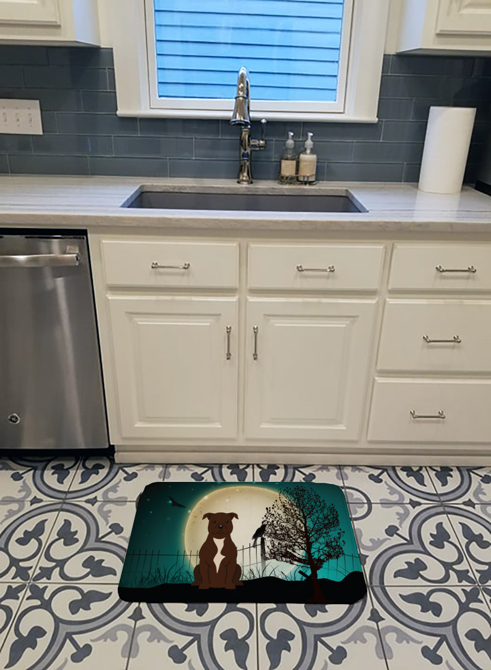 Decorate your space with our Halloween Staffordshire Bull Terrier artwork on a Floor Mat. Transform your floor into a work of art with Caroline's Treasures' Memory Foam Mat. This mat offers not only a stunning visual appeal but also a luxurious, plush feel that's incredibly comfortable to the touch. It's a versatile, machine-washable mat designed for both bath and kitchen use, ensuring you experience the best in comfort and convenience. Care Instructions: Maintaining this memory foam mat is a breeze. Simply follow the care instructions on the product tag. It's recommended to wash in cold water and dry on a low-temperature setting in the dryer. This ensures the mat retains its quality and longevity, allowing you to enjoy its beauty and comfort for a long time. Caroline's Treasures' Memory Foam Mat Machine Washable is the perfect blend of artistry, comfort, and practicality, making it a standout addition to any space. Upgrade your home decor with this versatile and stylish mat today.