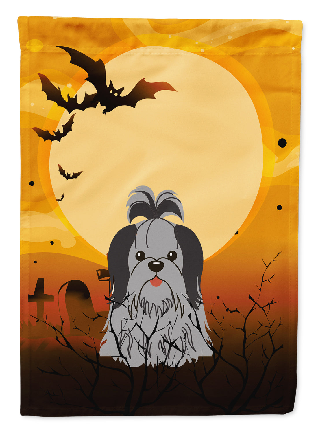 Halloween Shih Tzu Black Silver Garden Flag - Outdoor Decorative Yard Flag BB4355GF