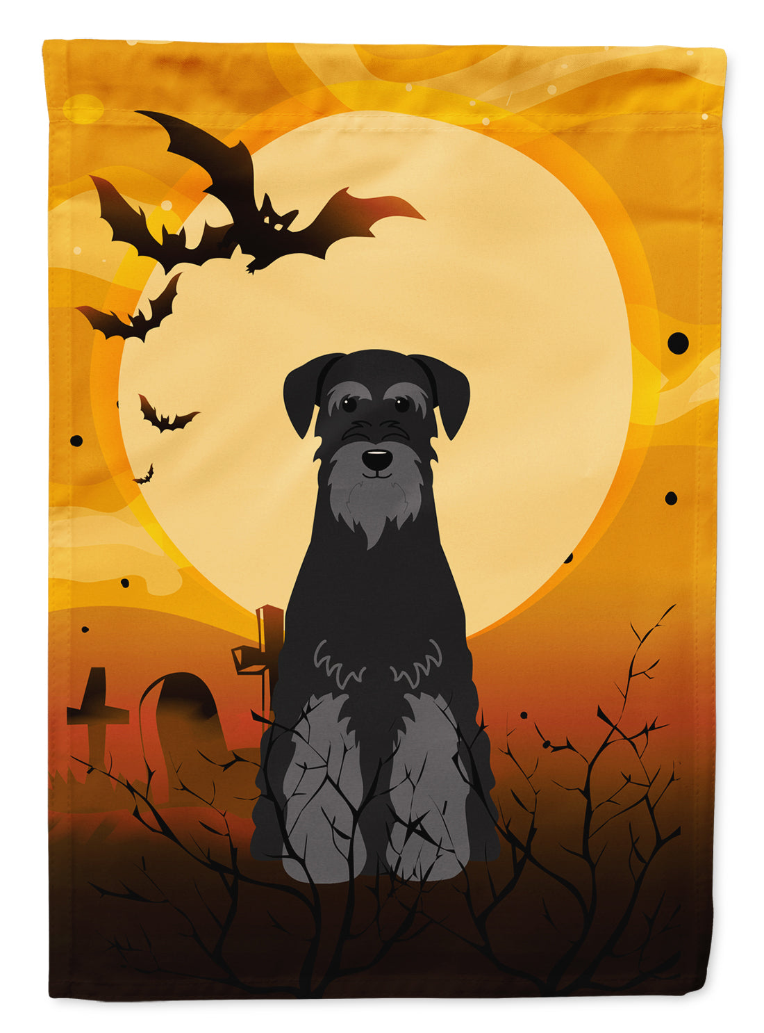 Decorate your space with our Halloween Schnauzer artwork on a Garden Flag. Enhance the beauty of your garden, patio, or yard with Caroline's Treasures Decorative Garden Flag, proudly made in the USA. Crafted from two pieces of thick, double-sided polyester fabric, this 2-ply garden flag is designed to withstand various weather conditions, making it water-resistant and weatherproof. Featuring correctly readable words on both sides, this garden flag offers a delightful visual experience from any angle. With its heavier weight, it stands out among other garden flags, ensuring stability and durability even in wind, rain, and snow. Measuring approximately 11 1/4 inches by 15 1/2 inches, this flag allows you to personalize your outdoor decor. It comes with a 1 1/2-inch sleeve sewn in, allowing easy attachment to any standard garden flag stand or garden size porch hanger (sold separately). Make a statement in your outdoor space with Caroline's Treasures Decorative Garden Flag, a vibrant and high-quality flag that adds color and personality to your surroundings. Proudly made in the USA, it's a symbol of quality craftsmanship and attention to detail.