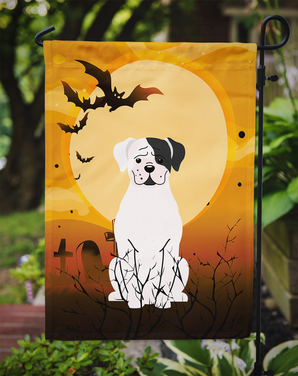 Halloween White Boxer Cooper Garden Flag - Outdoor Decorative Yard Flag BB4380GF