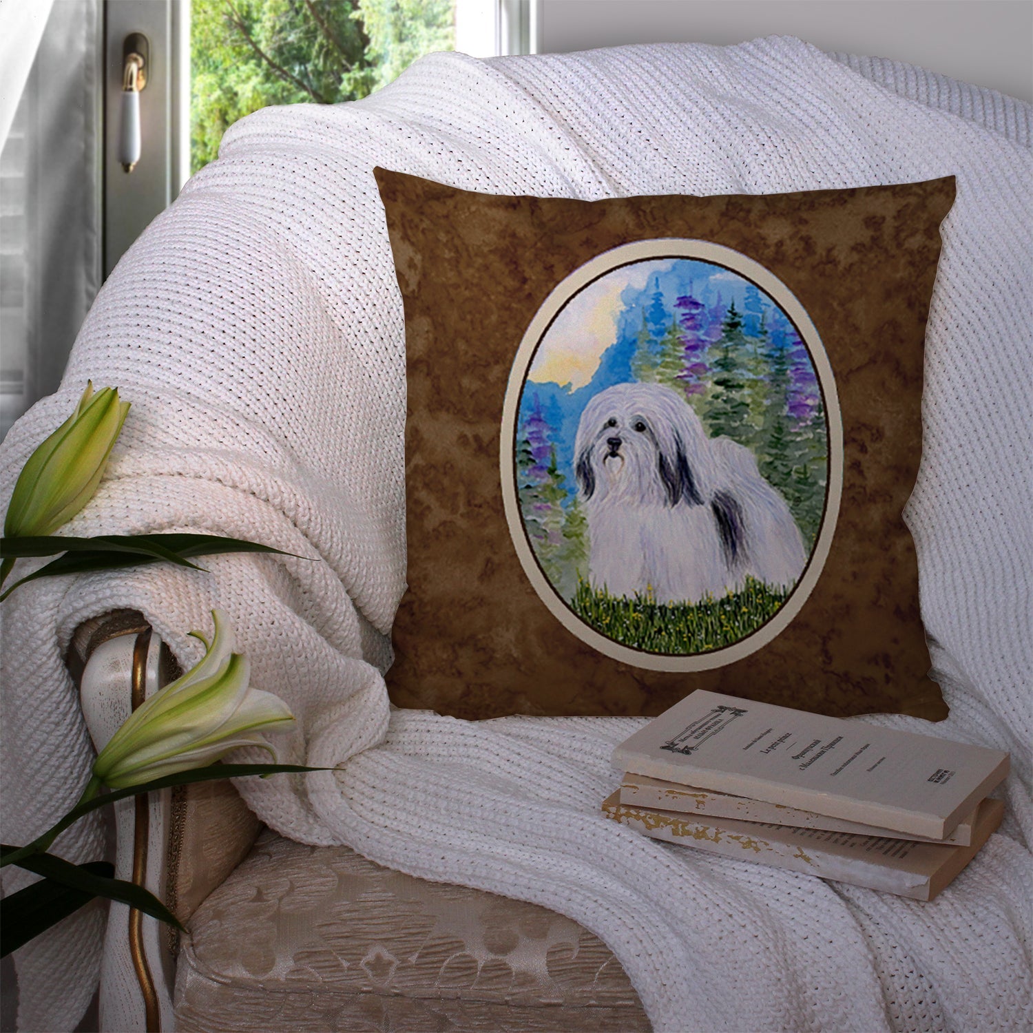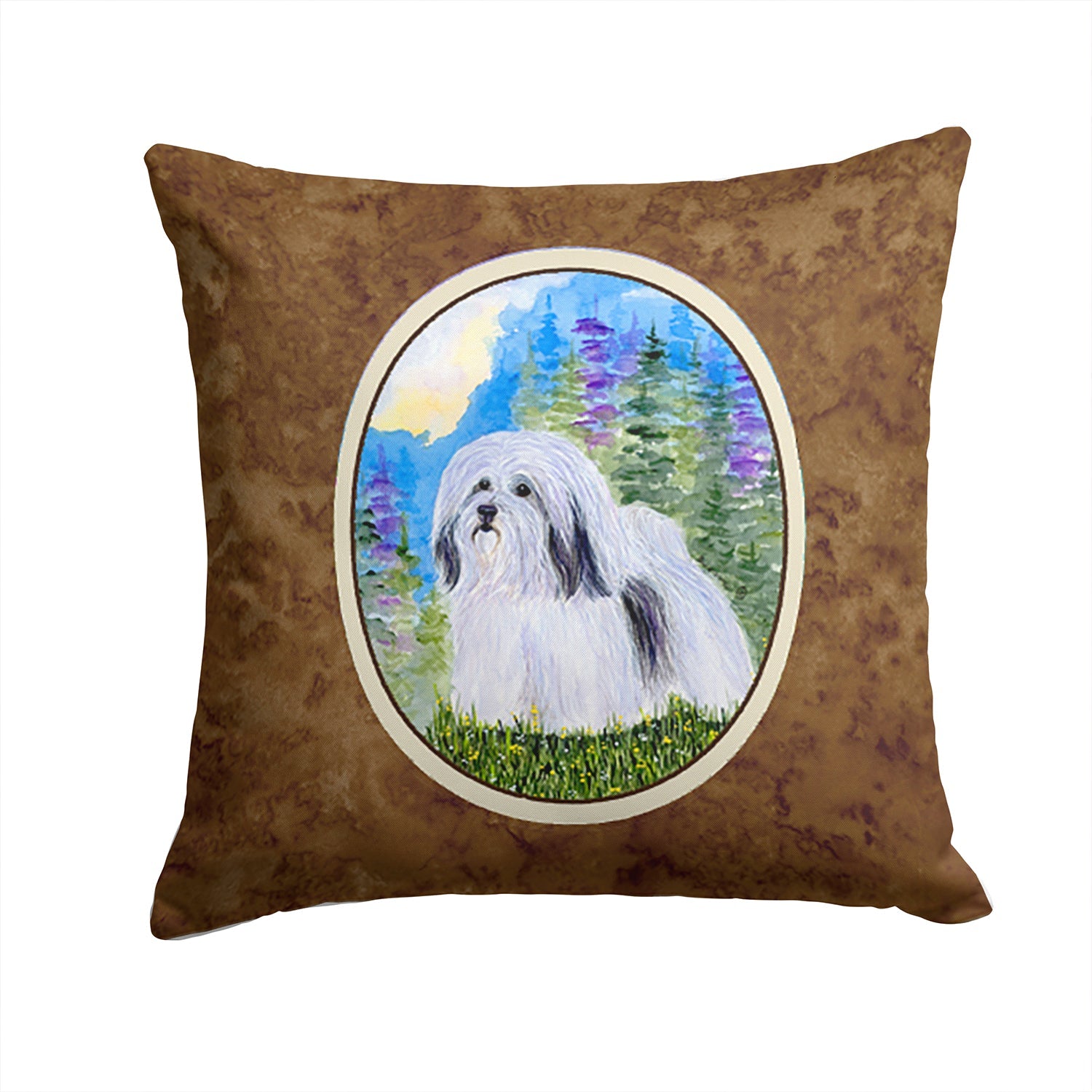 Decorate your space with our Havanese artwork on a Pillow. Add a touch of vibrancy and comfort to your outdoor seating with Caroline's Treasures Fabric Decorative Pillow. Measuring approximately 14 inches by 14 inches, this outdoor pillow is crafted to elevate the appeal of your patio furniture, infusing it with vivid color and artistic flair. The pillow includes a 100% Polyester Fabric sham filled with a quality pillow form to provide superior comfort. Innovatively made from our brand new material, specifically woven for its water resistance, this pillow is designed for durability. The soft canvas fabric offers versatility in use, fit for your indoor couch or your outdoor patio, porch, or veranda. The fabric is dyed with colorfast dyes built for resilience against weather conditions, ensuring the pillow retains its beauty over time. Constructed by sewing three fabric pieces to create a sham, the polyester insert is then nestled inside to form the pillow, resulting in an overstuffed pillow that maintains its shape. Both the sham and the pillow insert are proudly made in the United States. As the pillows are handcrafted, there may be minor variations in size, further enhancing their unique charm. Experience comfort in style with Caroline's Treasures Fabric Decorative Pillow.
