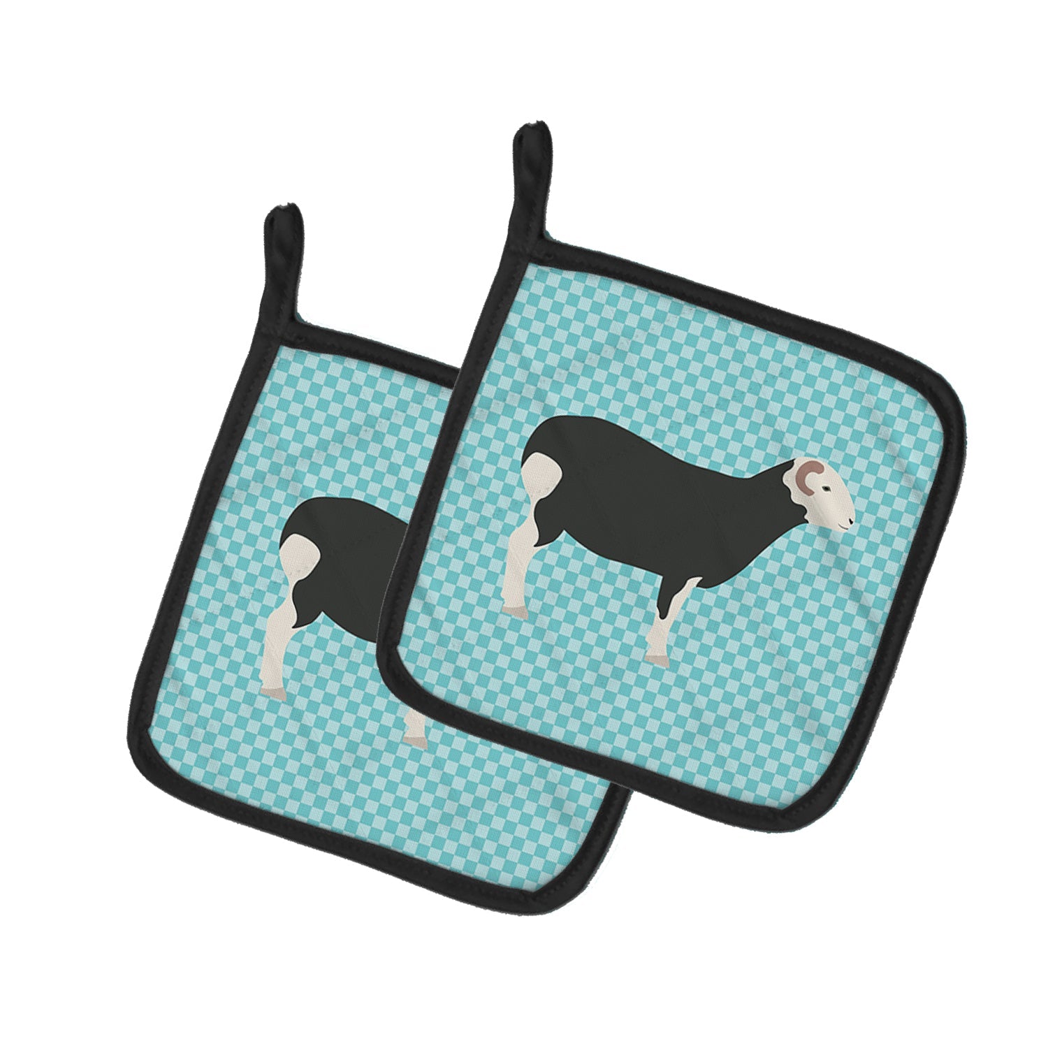 Decorate your space with our Herwick Sheep artwork on a Pair of Pot Holders. A Pair of Pot Holders to match your kitchen decor. Made in the USA these are thick and functional. Full color artwork decorates the front polyester fabric of the hot pad and accented by a black trim. Use these at as a trivet for your Thanksgiving or Christmas tablescape. Filled with insulated fabric and quilted for durability. These colorful pot holders will make a great gift for your favorite home cook or executive chef. Each pot holder measures approximately 7 1/2 inches by 7 1/2 inches. A hanging tab is included.