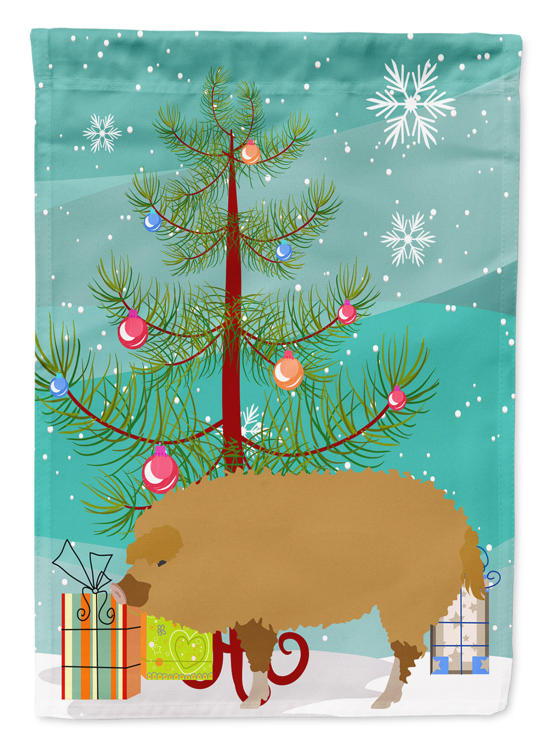 Decorate your space with our Christmas Hungarian Mangalica Pig artwork on a Garden Flag. Enhance the beauty of your garden, patio, or yard with Caroline's Treasures Decorative Garden Flag, proudly made in the USA. Crafted from two pieces of thick, double-sided polyester fabric, this 2-ply garden flag is designed to withstand various weather conditions, making it water-resistant and weatherproof. Featuring correctly readable words on both sides, this garden flag offers a delightful visual experience from any angle. With its heavier weight, it stands out among other garden flags, ensuring stability and durability even in wind, rain, and snow. Measuring approximately 11 1/4 inches by 15 1/2 inches, this flag allows you to personalize your outdoor decor. It comes with a 1 1/2-inch sleeve sewn in, allowing easy attachment to any standard garden flag stand or garden size porch hanger (sold separately). Make a statement in your outdoor space with Caroline's Treasures Decorative Garden Flag, a vibrant and high-quality flag that adds color and personality to your surroundings. Proudly made in the USA, it's a symbol of quality craftsmanship and attention to detail.