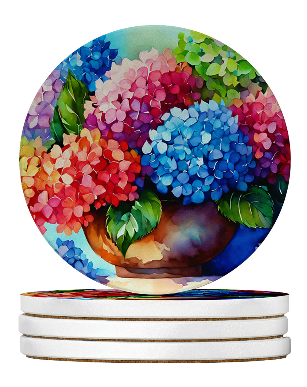 Hydrangeas in Watercolor Large Sandstone Coasters Pack of 4
