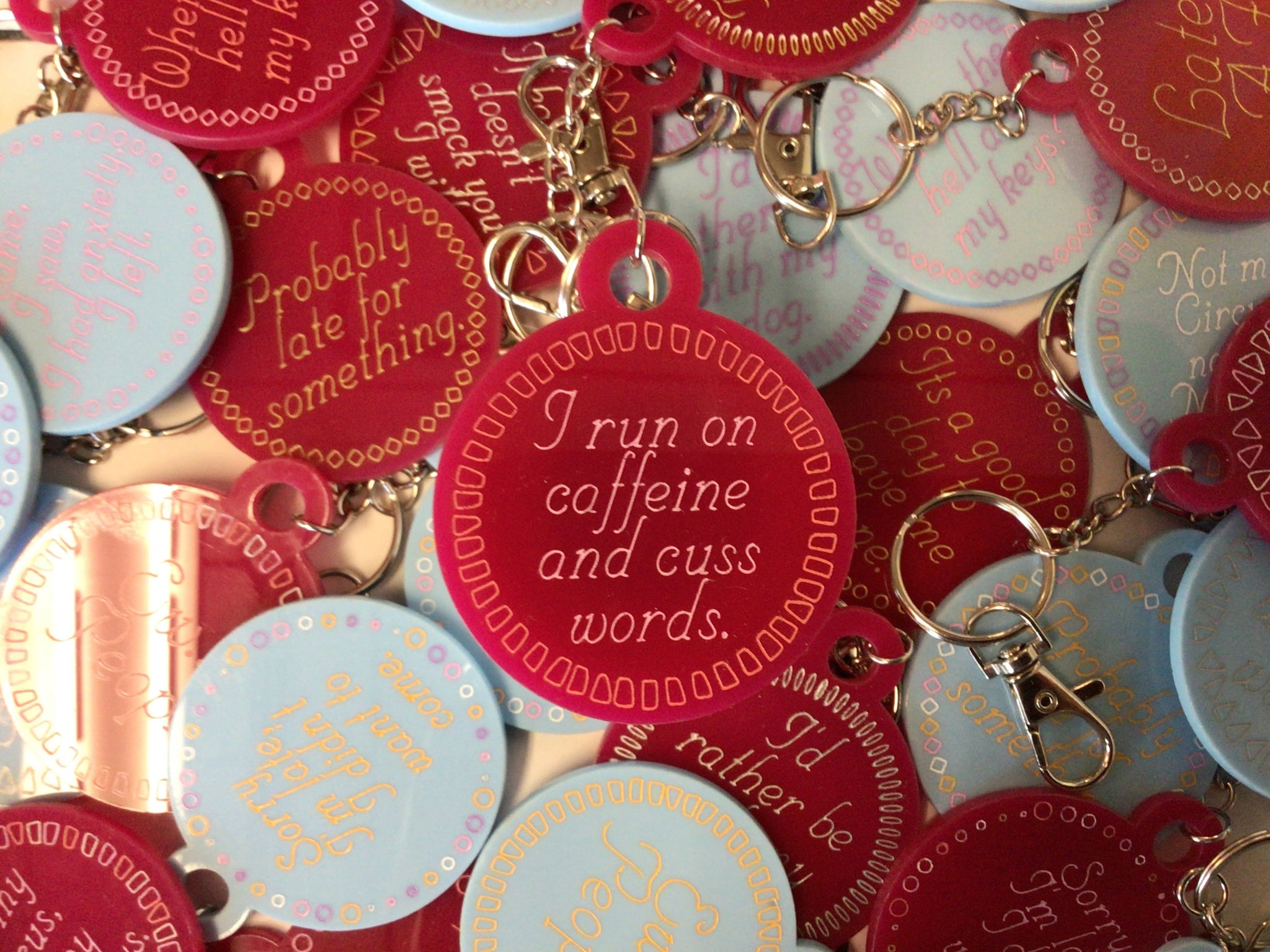 I Run On Caffeine and Cuss Words Keychain