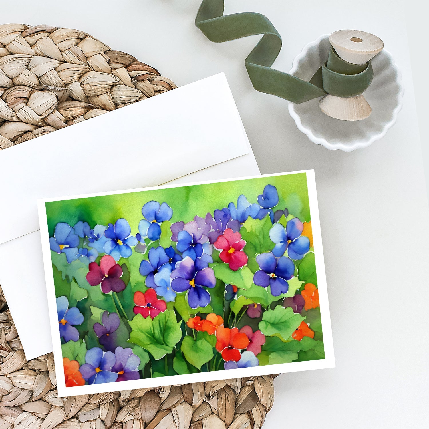 Decorate your space with our Illinois Violet artwork on a . Celebrate special moments with Caroline's Treasures Printed Greeting Card Pack. This pack includes eight beautifully folded 5x7 cards, accompanied by eight matching white envelopes. With blank interiors, these cards provide ample space for your personalized messages and heartfelt holiday greetings. Each card features captivating full-color artwork, meticulously printed in our facility on high-quality 80 lb cover stock or 216 GSM. The super smooth finish of the white cards enhances the visual impact of the artwork, creating a truly stunning presentation. Designed by our talented in-house artists or licensed artists, the artwork on these cards showcases their creativity and attention to detail. From vibrant illustrations to captivating designs, each card tells its own unique story. Whether it's for birthdays, anniversaries, holidays, or any special occasion, Caroline's Treasures Greeting Card Pack is the perfect way to convey your heartfelt sentiments. Share joy, love, and warm wishes with these exquisite cards and make every moment unforgettable.