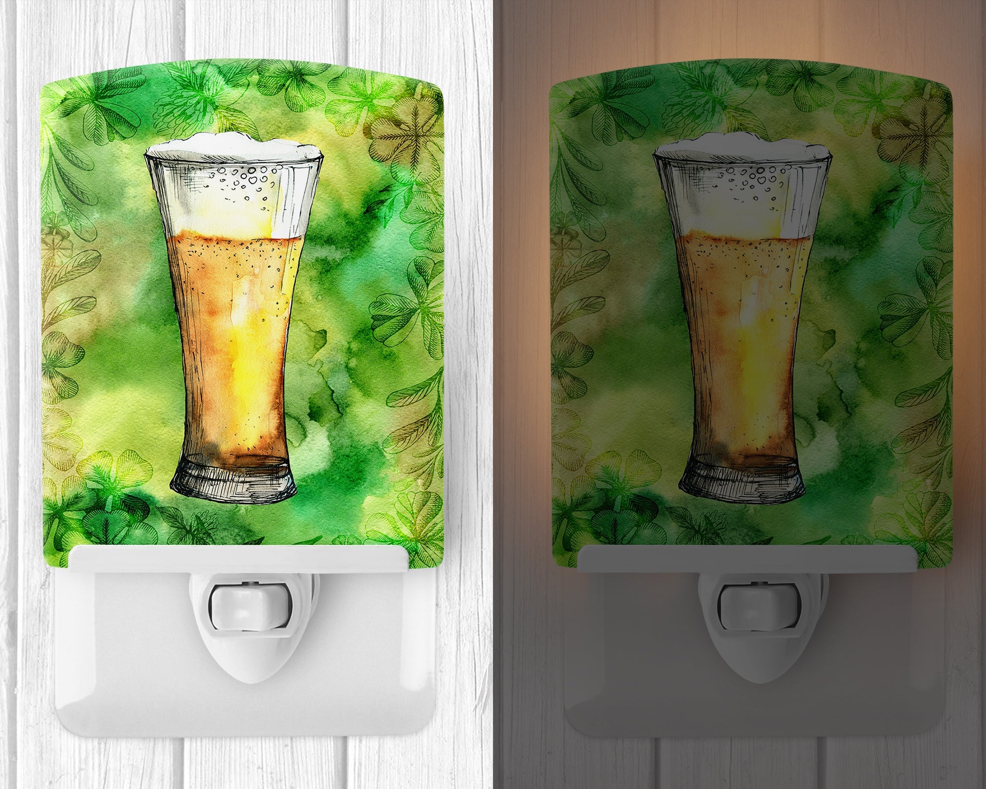 Decorate your space with our St Patrick's Day artwork on a Night Light. Introduce a splash of artistic flair and subtle illumination to your space with the Decorative Ceramic Night Light from Caroline's Treasures. Perfect for any room, this night light seamlessly blends functionality with an aesthetic appeal, offering a stylish solution to brighten up dark corners of your home or office. Boasting a six-inch high by four-inch wide ceramic tile at the front, it showcases vivid, full-color artwork from distinguished artists, transforming a simple utility into a vibrant art piece. The artwork is securely encased in a robust metal holder, ensuring durability and longevity. Two screws are provided to firmly affix the tile into the holder. The holder extends three inches deep, housing an included bulb that emits a soft, welcoming glow. This product meets all safety standards, as evidenced by its UL approval. Proudly made in the United States from imported components, this Decorative Ceramic Night Light is not just a functional device; it's a statement piece that enhances the ambiance of your surroundings.