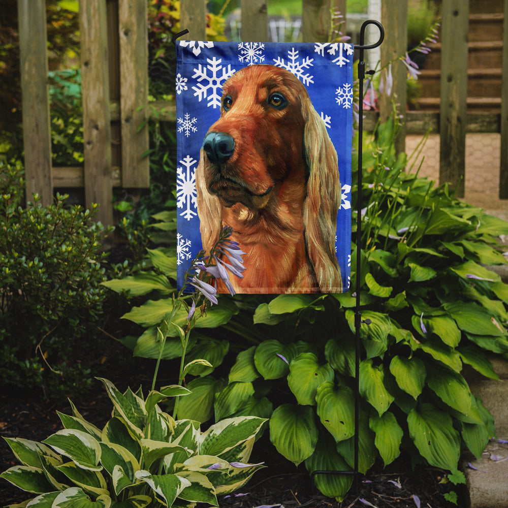 Decorate your space with our Christmas Irish Setter artwork on a Garden Flag. Bring a bit of Winter into your home with a Winter Garden Flag. Enhance the beauty of your garden, patio, or yard with Caroline's Treasures Decorative Garden Flag, proudly made in the USA. Crafted from two pieces of thick, double-sided polyester fabric, this 2-ply garden flag is designed to withstand various weather conditions, making it water-resistant and weatherproof. Featuring correctly readable words on both sides, this garden flag offers a delightful visual experience from any angle. With its heavier weight, it stands out among other garden flags, ensuring stability and durability even in wind, rain, and snow. Measuring approximately 11 1/4 inches by 15 1/2 inches, this flag allows you to personalize your outdoor decor. It comes with a 1 1/2-inch sleeve sewn in, allowing easy attachment to any standard garden flag stand or garden size porch hanger (sold separately). Make a statement in your outdoor space with Caroline's Treasures Decorative Garden Flag, a vibrant and high-quality flag that adds color and personality to your surroundings. Proudly made in the USA, it's a symbol of quality craftsmanship and attention to detail.