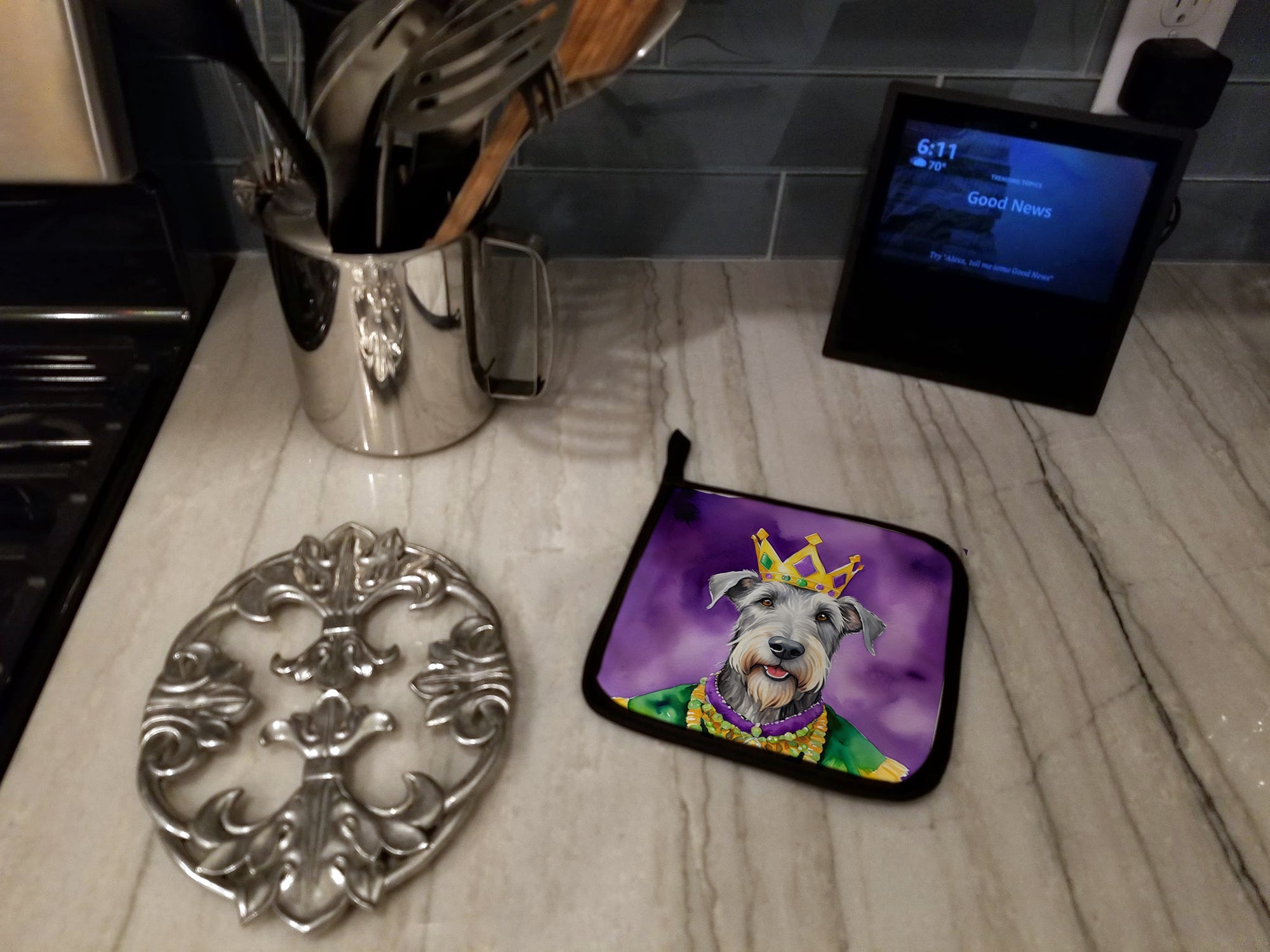 Pair of Pot Holders featuring breed specific Irish Wolfhound artwork. Celebrate Mardi Gras with this Mardi Gras Pair of Pot Holders. A Pair of Pot Holders to match your kitchen decor. Made in the USA these are thick and functional. Full color artwork decorates the front polyester fabric of the hot pad and accented by a black trim. Use these at as a trivet for your Thanksgiving or Christmas tablescape. Filled with insulated fabric and quilted for durability. These colorful pot holders will make a great gift for your favorite home cook or executive chef. Each pot holder measures approximately 7 1/2 inches by 7 1/2 inches. A hanging tab is included.