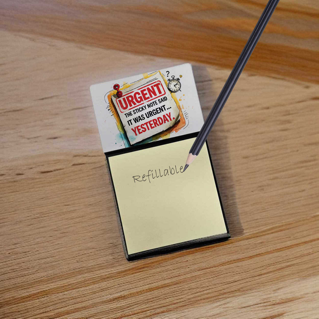 Bring a smile to your shift with this Funny Nurse Sticky Note Holder from Caroline’s Treasures. Featuring the saying - The sticky note said it was urgent… yesterday, it’s the perfect blend of humor and practicality for nurses, nursing students, and healthcare staff. Keep your notes, patient reminders, or grocery lists in one convenient spot while adding a little personality to your workspace. Easy to Refill: Includes a starter pad of 3x3 sticky notes. When it’s time for a new pad, roll a small piece of tape (sticky side out) and place it on the back of the new pad. Press the pad firmly onto the base, and you’re ready to jot notes in seconds. The rigid base keeps your notes secure on any desk or workstation, and you can make it magnetic by adding a business card–sized magnet (sold separately) — perfect for lockers, refrigerators, or rolling carts. An ideal nurse gift for coworkers, nursing grads, nurse practitioners, and physician assistants, this dispenser is both functional and funny — a conversation starter and a stress-buster in the middle of a busy shift. Whether you’re charting, brainstorming, or just trying to remember to buy coffee, this little desk accessory will make you smile every time you use it.