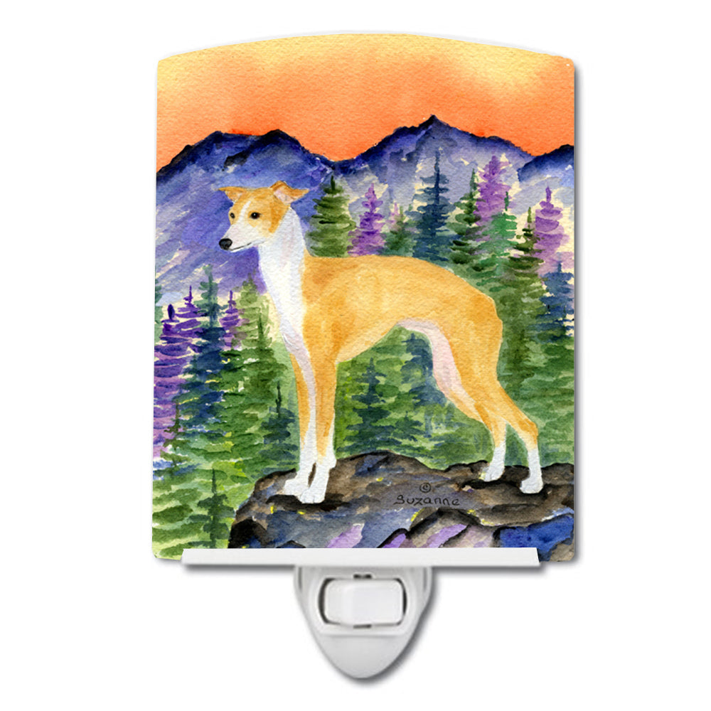 Decorate your space with our Italian Greyhound artwork on a Night Light. Introduce a splash of artistic flair and subtle illumination to your space with the Decorative Ceramic Night Light from Caroline's Treasures. Perfect for any room, this night light seamlessly blends functionality with an aesthetic appeal, offering a stylish solution to brighten up dark corners of your home or office. Boasting a six-inch high by four-inch wide ceramic tile at the front, it showcases vivid, full-color artwork from distinguished artists, transforming a simple utility into a vibrant art piece. The artwork is securely encased in a robust metal holder, ensuring durability and longevity. Two screws are provided to firmly affix the tile into the holder. The holder extends three inches deep, housing an included bulb that emits a soft, welcoming glow. This product meets all safety standards, as evidenced by its UL approval. Proudly made in the United States from imported components, this Decorative Ceramic Night Light is not just a functional device; it's a statement piece that enhances the ambiance of your surroundings.