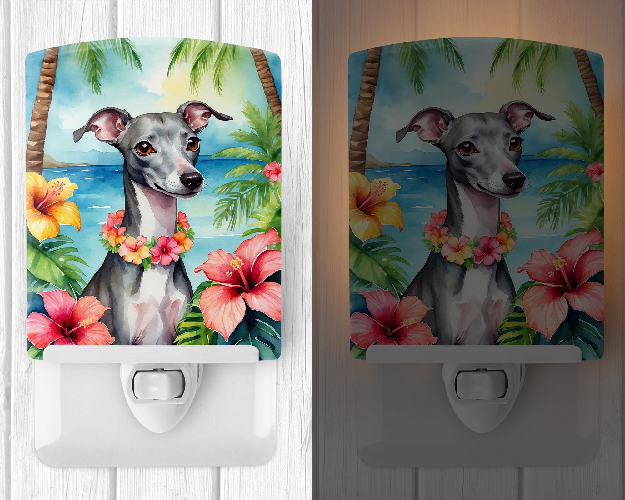 Decorate your space with our Italian Greyhound artwork on a Night Light. Bring a bit of Summer into your home with a Summer Night Light. Introduce a splash of artistic flair and subtle illumination to your space with the Decorative Ceramic Night Light from Caroline's Treasures. Perfect for any room, this night light seamlessly blends functionality with an aesthetic appeal, offering a stylish solution to brighten up dark corners of your home or office. Boasting a six-inch high by four-inch wide ceramic tile at the front, it showcases vivid, full-color artwork from distinguished artists, transforming a simple utility into a vibrant art piece. The artwork is securely encased in a robust metal holder, ensuring durability and longevity. Two screws are provided to firmly affix the tile into the holder. The holder extends three inches deep, housing an included bulb that emits a soft, welcoming glow. This product meets all safety standards, as evidenced by its UL approval. Proudly made in the United States from imported components, this Decorative Ceramic Night Light is not just a functional device; it's a statement piece that enhances the ambiance of your surroundings.