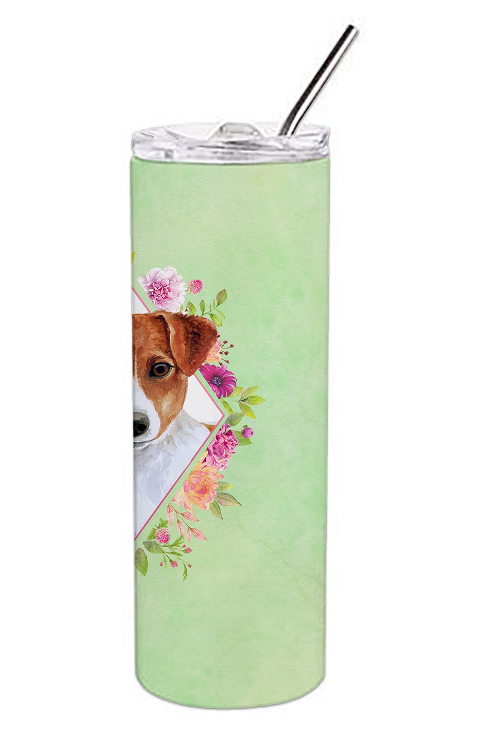 Jack Russell Terrier #2 Green Flowers Double Walled Stainless Steel 20 oz Skinny Tumbler CK4316TBL20