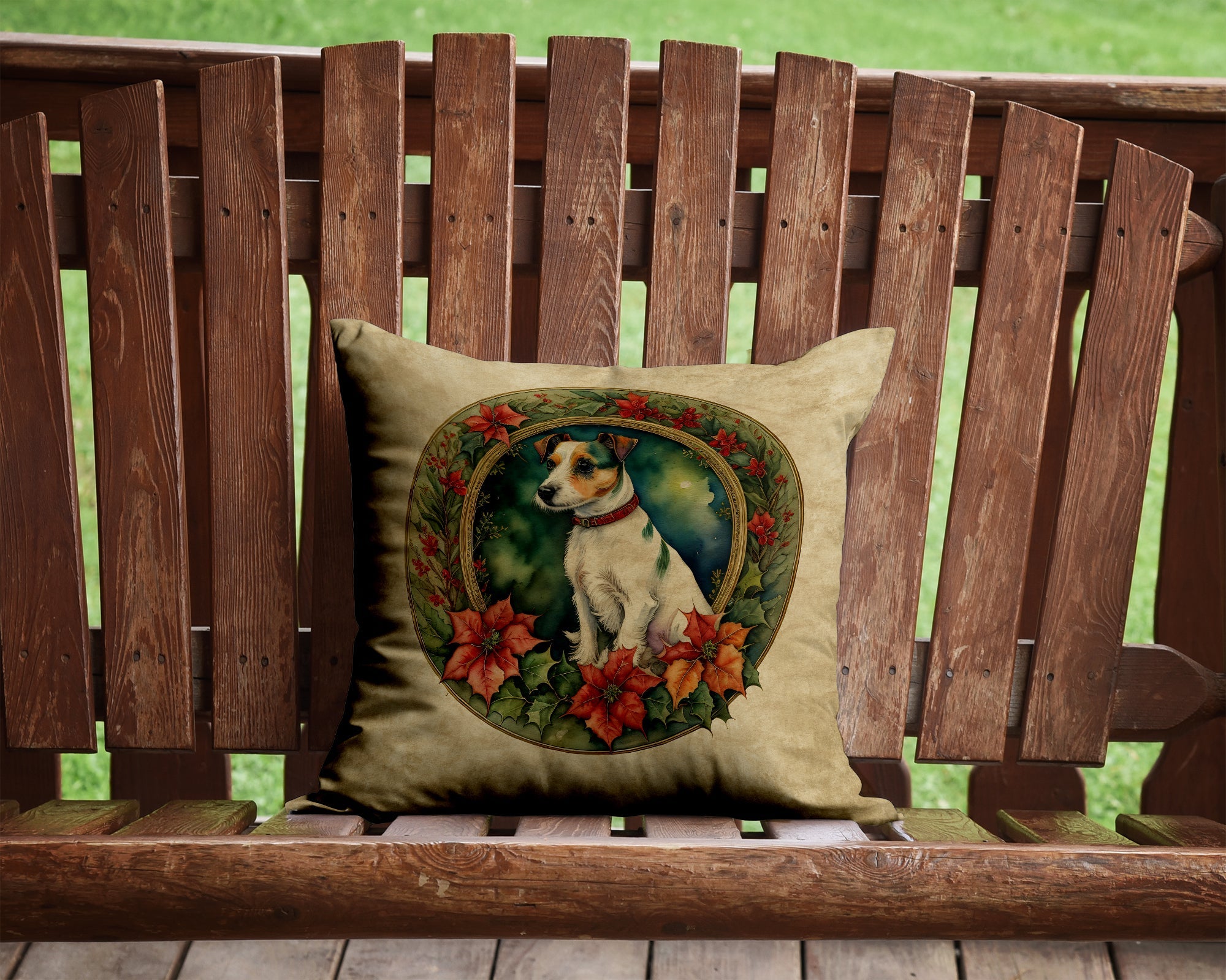 Decorate your space with our Christmas Jack Russell Terrier artwork on a Pillow. Bring a bit of Winter into your home with a Winter Pillow. Add a touch of vibrancy and comfort to your outdoor seating with Caroline's Treasures Fabric Decorative Pillow. Measuring approximately 14 inches by 14 inches, this outdoor pillow is crafted to elevate the appeal of your patio furniture, infusing it with vivid color and artistic flair. The pillow includes a 100% Polyester Fabric sham filled with a quality pillow form to provide superior comfort. Innovatively made from our brand new material, specifically woven for its water resistance, this pillow is designed for durability. The soft canvas fabric offers versatility in use, fit for your indoor couch or your outdoor patio, porch, or veranda. The fabric is dyed with colorfast dyes built for resilience against weather conditions, ensuring the pillow retains its beauty over time. Constructed by sewing three fabric pieces to create a sham, the polyester insert is then nestled inside to form the pillow, resulting in an overstuffed pillow that maintains its shape. Both the sham and the pillow insert are proudly made in the United States. As the pillows are handcrafted, there may be minor variations in size, further enhancing their unique charm. Experience comfort in style with Caroline's Treasures Fabric Decorative Pillow.