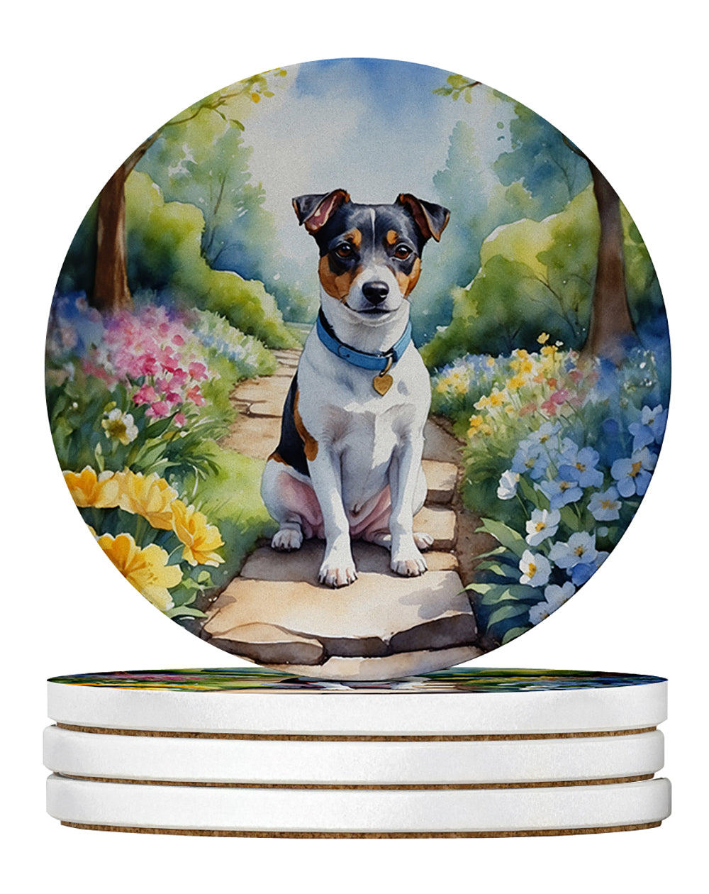 Large Sandstone Coasters Pack of 4 featuring breed specific Jack Russell Terrier artwork. Introducing Caroline's Treasures Large Sandstone Coasters Pack of 4, the perfect addition to your home decor. Each coaster measures nearly 4 inches and is made from absorbent sandstone with a cork backing. Designed and printed in the United States, these coasters feature artwork from Caroline's Treasures' talented artists. Protect your countertops and tables from hot and cold drink condensation with these absorbent coasters. They efficiently absorb moisture, ensuring your surfaces stay dry and clean. Choose from a wide range of designs to update and enhance your decor or give them as a thoughtful gift for any occasion. Cleaning is a breeze—simply wipe the coaster with a damp towel to remove any spills or stains. Each set comes in a brown gift box, making it ready to be wrapped for that special person in your life. These absorbent sandstone coasters also make an excellent housewarming gift, providing both practicality and style. Celebrate birthdays, Mother's Day, Father's Day, Thanksgiving, Christmas, Teacher's Appreciation Day, or simply show someone you care with these versatile and charming coasters. Caroline's Treasures Large Sandstone Coasters Pack of 4 is the perfect happy gift for any occasion.