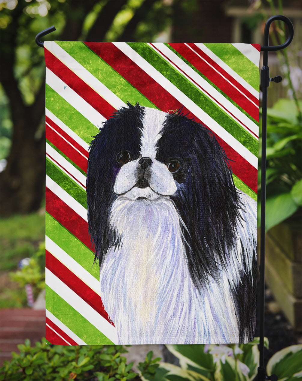 Decorate your space with our Christmas Japanese Chin artwork on a Garden Flag. Enhance the beauty of your garden, patio, or yard with Caroline's Treasures Decorative Garden Flag, proudly made in the USA. Crafted from two pieces of thick, double-sided polyester fabric, this 2-ply garden flag is designed to withstand various weather conditions, making it water-resistant and weatherproof. Featuring correctly readable words on both sides, this garden flag offers a delightful visual experience from any angle. With its heavier weight, it stands out among other garden flags, ensuring stability and durability even in wind, rain, and snow. Measuring approximately 11 1/4 inches by 15 1/2 inches, this flag allows you to personalize your outdoor decor. It comes with a 1 1/2-inch sleeve sewn in, allowing easy attachment to any standard garden flag stand or garden size porch hanger (sold separately). Make a statement in your outdoor space with Caroline's Treasures Decorative Garden Flag, a vibrant and high-quality flag that adds color and personality to your surroundings. Proudly made in the USA, it's a symbol of quality craftsmanship and attention to detail.