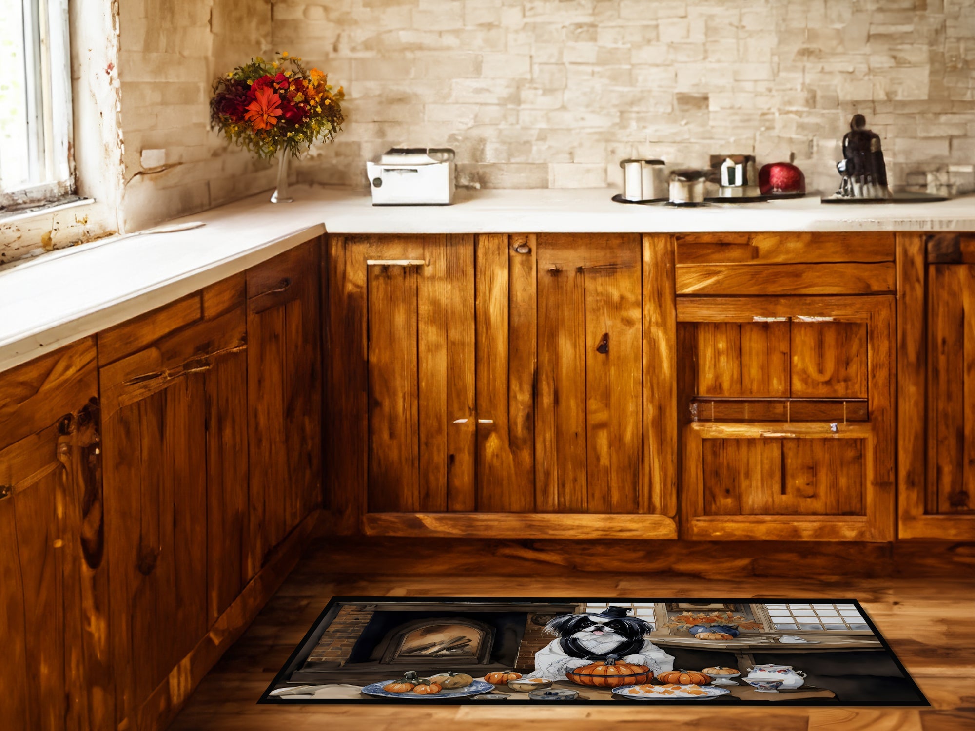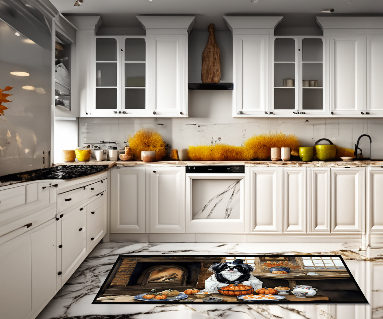 Decorate your space with our Halloween Japanese Chin artwork on a Floor Runner. Bring a bit of Fall into your home with a Fall Floor Runner. Transform your living space with Caroline's Treasures Decorative Indoor/Outdoor Runner Mat. Measuring 28 inches by 58 inches, this versatile floor runner is suitable for both indoor and outdoor use, perfect for defining spaces and adding a touch of artistic flair to your decor. Proudly made and printed in the USA, this floor mat features an action back felt point design, framed by a durable black binding tape that enhances the vibrant artwork. It is dyed permanently for moderate traffic, ensuring it maintains its unique design despite everyday use. The mat's rubber backing enhances its stability, preventing slipping on smooth surfaces, making it a safe choice for your home. Designed to be durable and fade-resistant, this mat withstands the test of time and elements, especially when placed under a covered outdoor space. Cleaning is a breeze - simply wash with non-sudsy cleaner and water, use pressure from a garden hose, power washer, or vacuum it like a hardwood floor. Part of the Seafood category, this mat is more than a floor accessory; it's a statement of style.