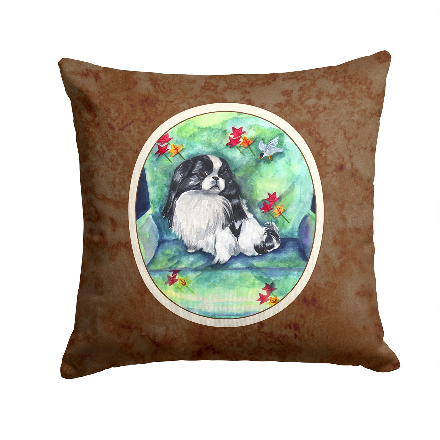 Decorate your space with our Japanese Chin artwork on a Pillow. Add a touch of vibrancy and comfort to your outdoor seating with Caroline's Treasures Fabric Decorative Pillow. Measuring approximately 14 inches by 14 inches, this outdoor pillow is crafted to elevate the appeal of your patio furniture, infusing it with vivid color and artistic flair. The pillow includes a 100% Polyester Fabric sham filled with a quality pillow form to provide superior comfort. Innovatively made from our brand new material, specifically woven for its water resistance, this pillow is designed for durability. The soft canvas fabric offers versatility in use, fit for your indoor couch or your outdoor patio, porch, or veranda. The fabric is dyed with colorfast dyes built for resilience against weather conditions, ensuring the pillow retains its beauty over time. Constructed by sewing three fabric pieces to create a sham, the polyester insert is then nestled inside to form the pillow, resulting in an overstuffed pillow that maintains its shape. Both the sham and the pillow insert are proudly made in the United States. As the pillows are handcrafted, there may be minor variations in size, further enhancing their unique charm. Experience comfort in style with Caroline's Treasures Fabric Decorative Pillow.