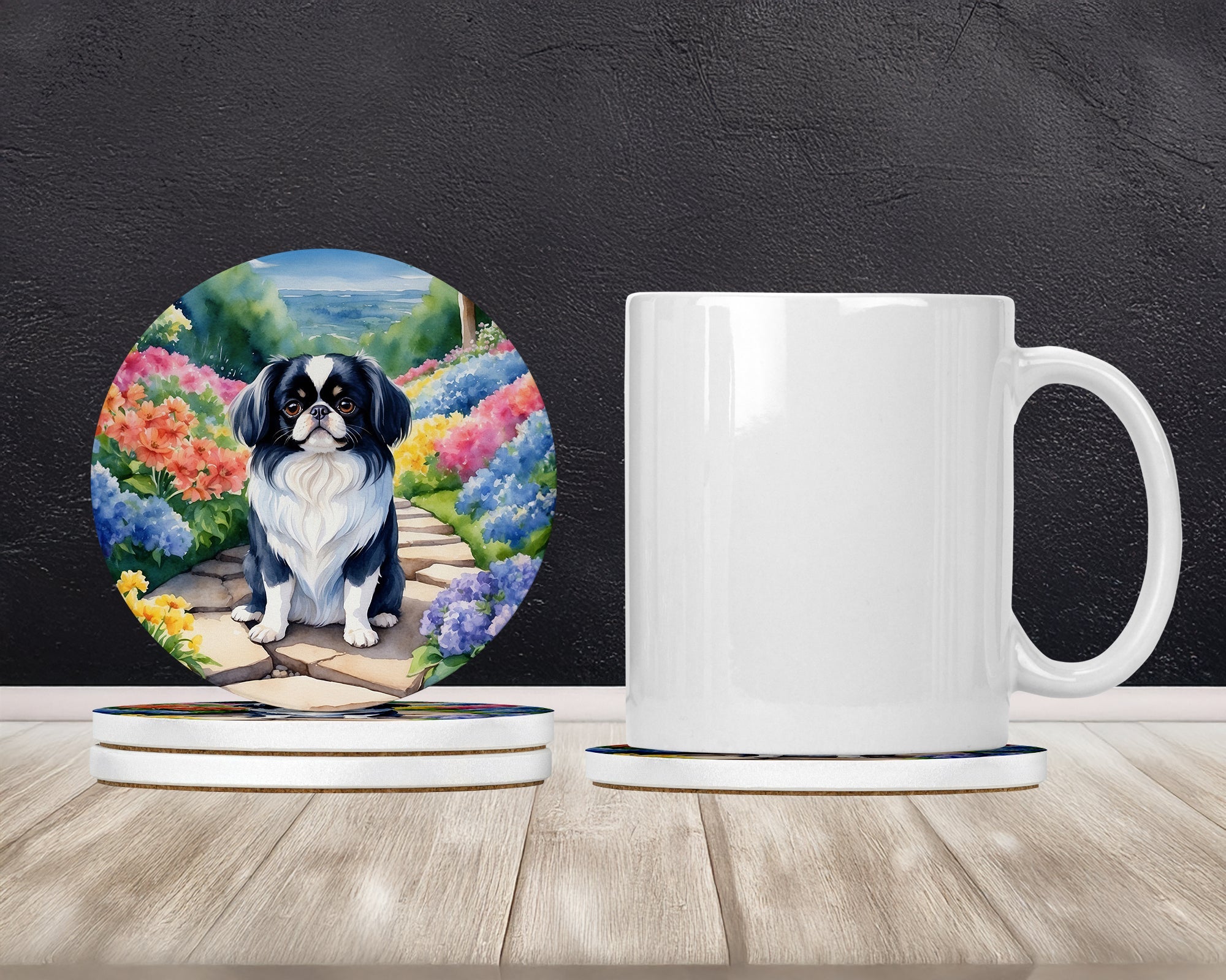 Japanese Chin Spring Path Large Sandstone Coasters Pack of 4