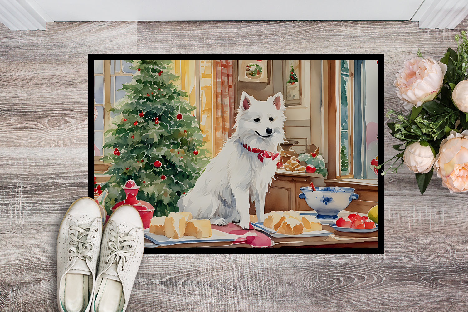 Japanese Spitz Christmas Cookies Doormat-24x36 Indoor / Outdoor Rug | Made in USA