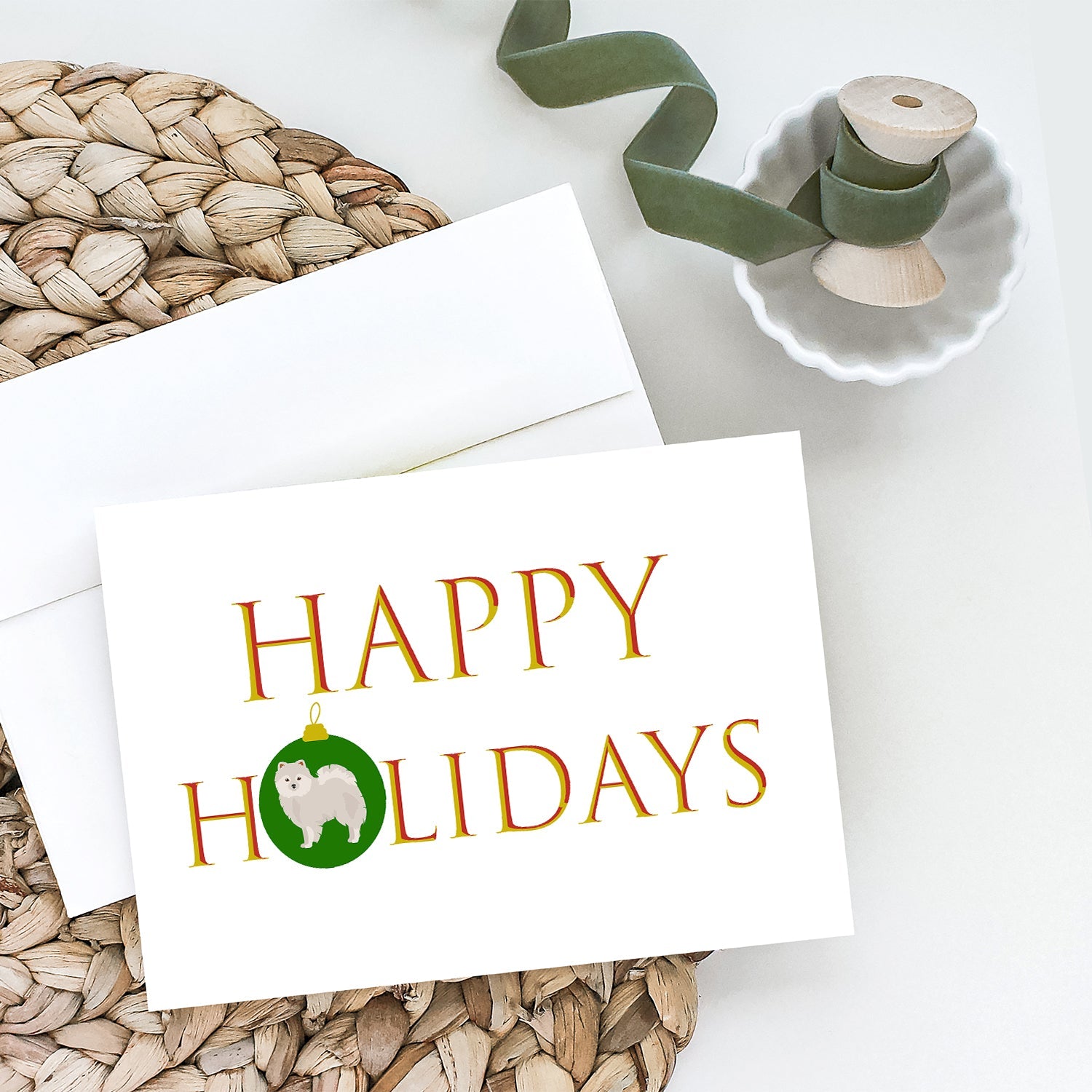 Decorate your space with our Christmas Japanese Spitz artwork on a . Celebrate special moments with Caroline's Treasures Printed Greeting Card Pack. This pack includes eight beautifully folded 5x7 cards, accompanied by eight matching white envelopes. With blank interiors, these cards provide ample space for your personalized messages and heartfelt holiday greetings. Each card features captivating full-color artwork, meticulously printed in our facility on high-quality 80 lb cover stock or 216 GSM. The super smooth finish of the white cards enhances the visual impact of the artwork, creating a truly stunning presentation. Designed by our talented in-house artists or licensed artists, the artwork on these cards showcases their creativity and attention to detail. From vibrant illustrations to captivating designs, each card tells its own unique story. Whether it's for birthdays, anniversaries, holidays, or any special occasion, Caroline's Treasures Greeting Card Pack is the perfect way to convey your heartfelt sentiments. Share joy, love, and warm wishes with these exquisite cards and make every moment unforgettable.