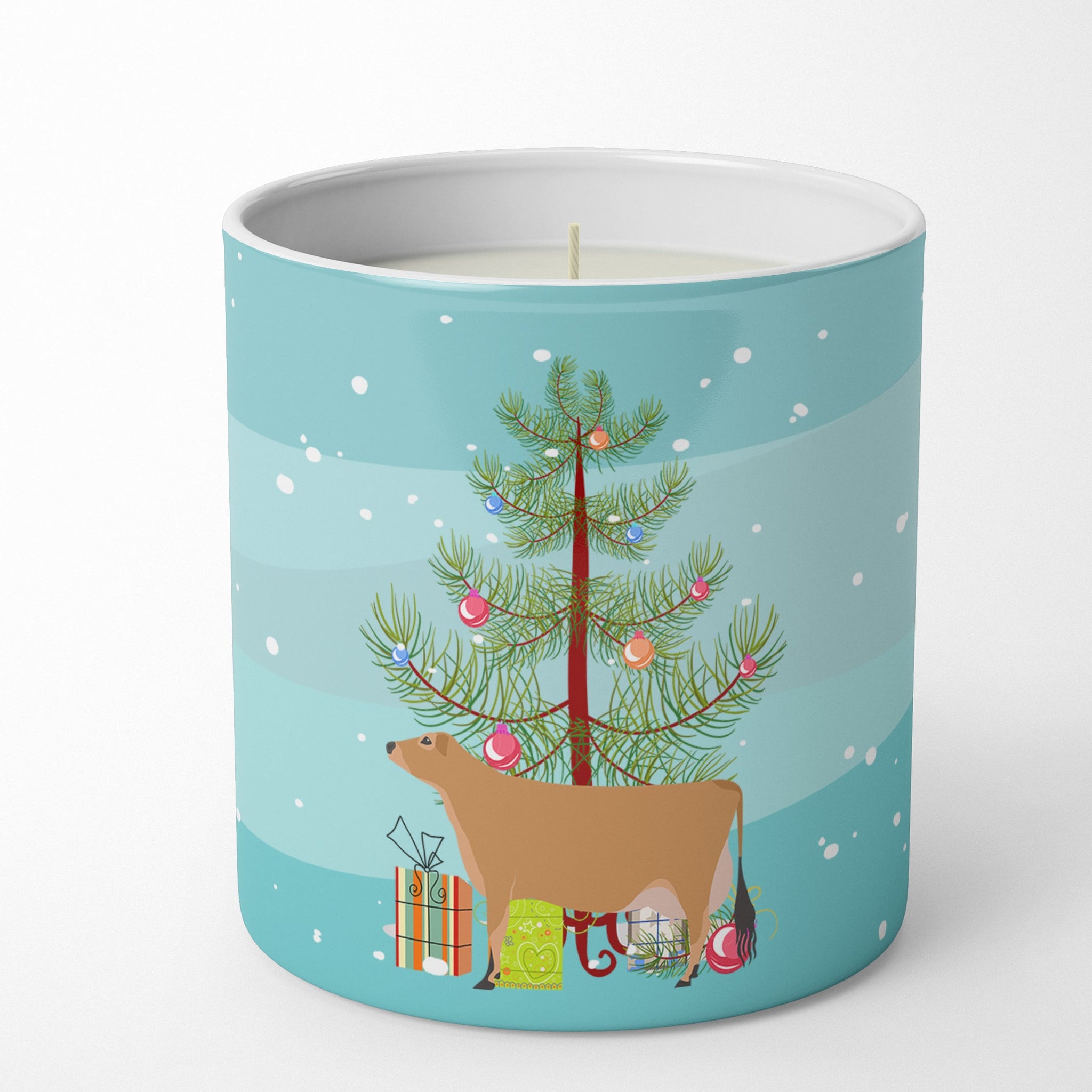 Decorate your space with our Christmas Jersey Cow artwork on a 10 oz Soy Candle. Upgrade your ambiance with our Decorative Soy Wax Candle. No more settling for ordinary candles. With a beautifully designed 10 oz container adorned with exclusive artwork from our artists, this candle not only illuminates your space but also adds a touch of elegance to your decor. Crafted with meticulous care, each candle is hand-poured and made from 100% soy wax, ensuring a clean, consistent burn. Free from chemical-based dyes, the all-white wax complements any setting. Our soy wax is paired with high-quality fragrance oils, releasing a robust scent that transforms your surroundings. The candle provides a great deal of burn time, though this may vary based on air flow, burn duration, and wick maintenance. For safe use, always trim the wick to 1/4 inch before lighting and ensure your candle is on a level surface. We recommend not burning for more than four hours at a time and discontinuing use when only 1/4 inch of wax remains. Our Decorative Soy Wax Candle is more than just a candle. It is a piece of art that enhances your space while ensuring a soothing, fragrant ambiance. Remember, always burn within sight, and keep away from flammable objects, pets, and children. Enjoy the beauty and tranquility it brings to your everyday life.