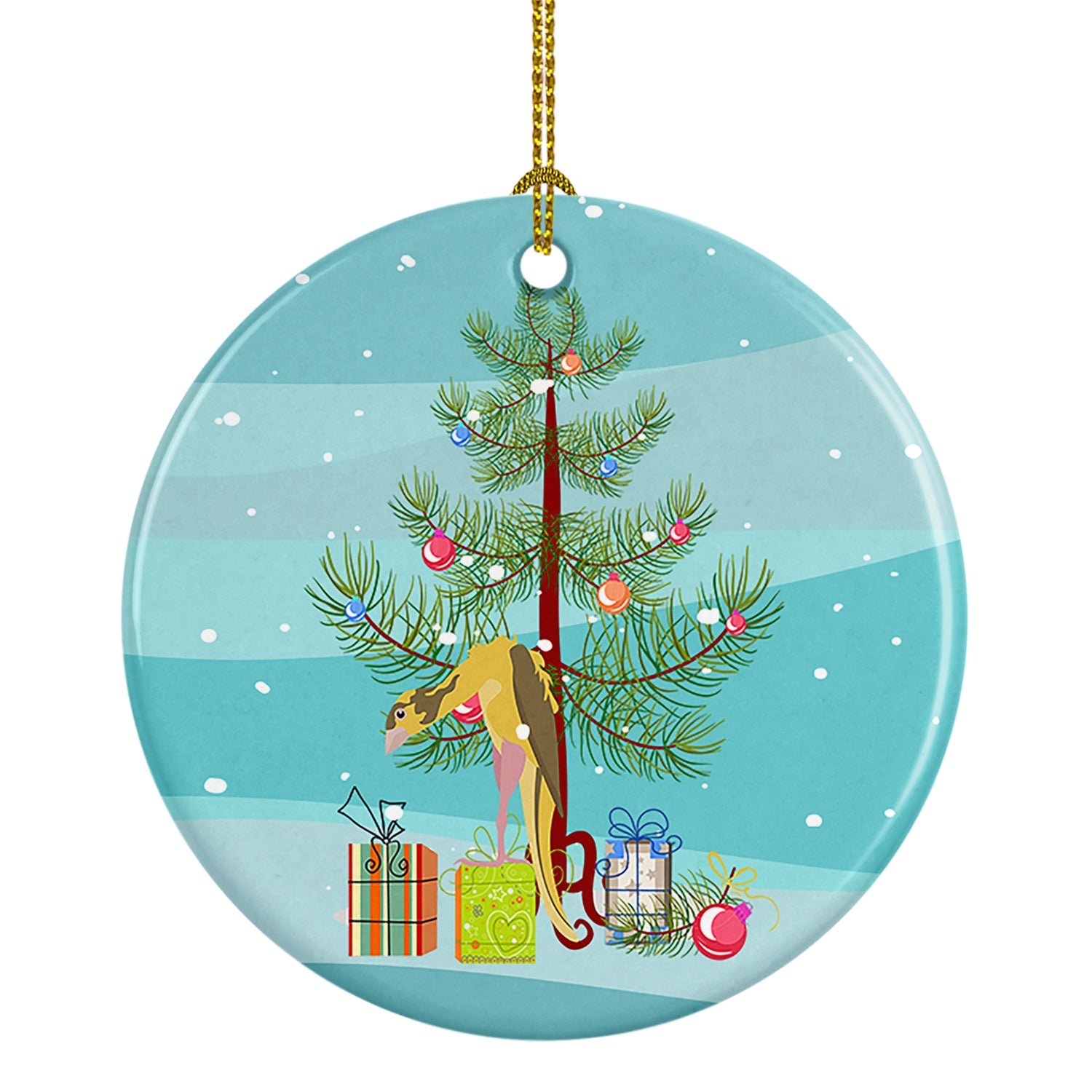 Decorate your space with our Christmas Jibso Canary artwork on a Ornament. Add a touch of personalized charm to your Christmas tree this holiday season with our Ceramic Ornament. Measuring 2.8125 inches in diameter, this round porcelain ornament beautifully reflects your festive lights, enhancing your holiday decor. The gloss surface sets off the vibrant, full-color artwork contributed by one of our talented artists, bringing a pop of color and joy to your tree. This Ceramic Ornament doesn't stop at being merely decorative. The white back is designed for personalization. Write a heartfelt message, mark a special year, or inscribe a date with a paint pen or a permanent marker to create a treasured memento. Please ensure you allow any personalization to dry thoroughly before handling to maintain the pristine finish. Included with the ornament is a delicate gold cord for easy hanging. Made in the USA, this Ceramic Ornament makes an exceptional gift for a pet sitter, teacher, family member, or anyone you wish to share a little Christmas magic with. With its blend of style, charm, and personal touch, it's a meaningful addition to any Christmas tree.