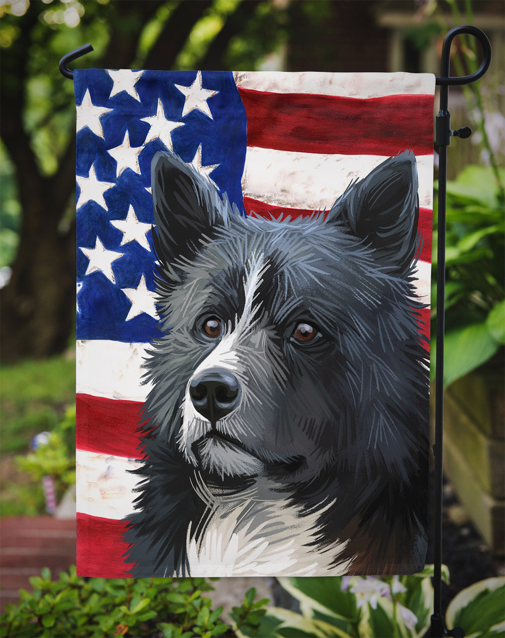 Decorate your space with our Karelian Bear Dog artwork on a Garden Flag. Enhance the beauty of your garden, patio, or yard with Caroline's Treasures Decorative Garden Flag, proudly made in the USA. Crafted from two pieces of thick, double-sided polyester fabric, this 2-ply garden flag is designed to withstand various weather conditions, making it water-resistant and weatherproof. Featuring correctly readable words on both sides, this garden flag offers a delightful visual experience from any angle. With its heavier weight, it stands out among other garden flags, ensuring stability and durability even in wind, rain, and snow. Measuring approximately 11 1/4 inches by 15 1/2 inches, this flag allows you to personalize your outdoor decor. It comes with a 1 1/2-inch sleeve sewn in, allowing easy attachment to any standard garden flag stand or garden size porch hanger (sold separately). Make a statement in your outdoor space with Caroline's Treasures Decorative Garden Flag, a vibrant and high-quality flag that adds color and personality to your surroundings. Proudly made in the USA, it's a symbol of quality craftsmanship and attention to detail.