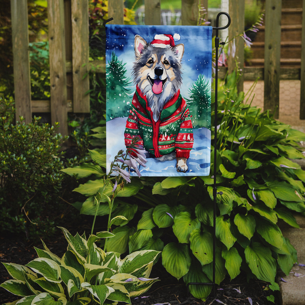 Decorate your space with our Christmas Keeshond artwork on a Garden Flag. Enhance the beauty of your garden, patio, or yard with Caroline's Treasures Decorative Garden Flag, proudly made in the USA. Crafted from two pieces of thick, double-sided polyester fabric, this 2-ply garden flag is designed to withstand various weather conditions, making it water-resistant and weatherproof. Featuring correctly readable words on both sides, this garden flag offers a delightful visual experience from any angle. With its heavier weight, it stands out among other garden flags, ensuring stability and durability even in wind, rain, and snow. Measuring approximately 11 1/4 inches by 15 1/2 inches, this flag allows you to personalize your outdoor decor. It comes with a 1 1/2-inch sleeve sewn in, allowing easy attachment to any standard garden flag stand or garden size porch hanger (sold separately). Make a statement in your outdoor space with Caroline's Treasures Decorative Garden Flag, a vibrant and high-quality flag that adds color and personality to your surroundings. Proudly made in the USA, it's a symbol of quality craftsmanship and attention to detail.