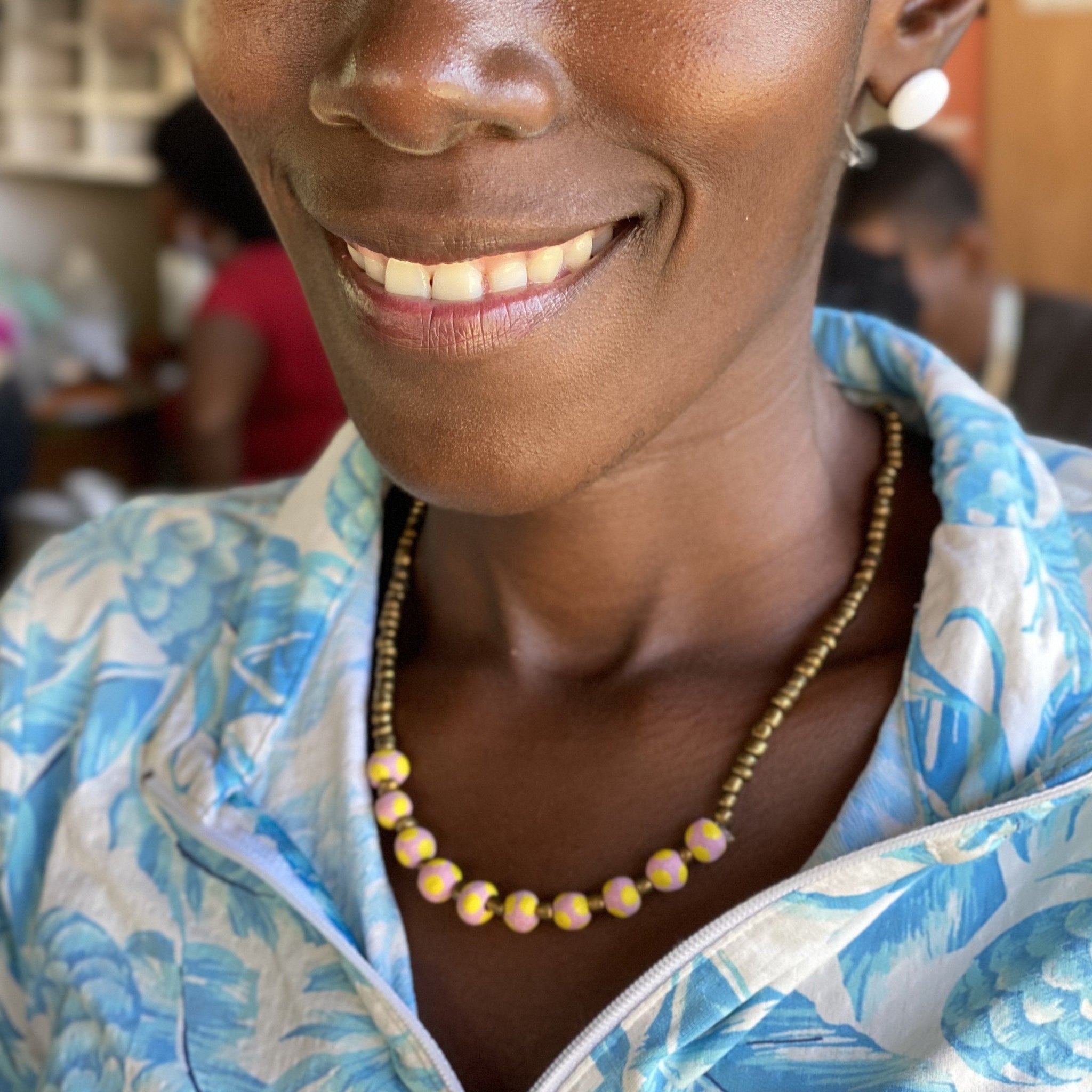 Great for girls, young and younger! This necklace is made from hand-painted ceramic beads.