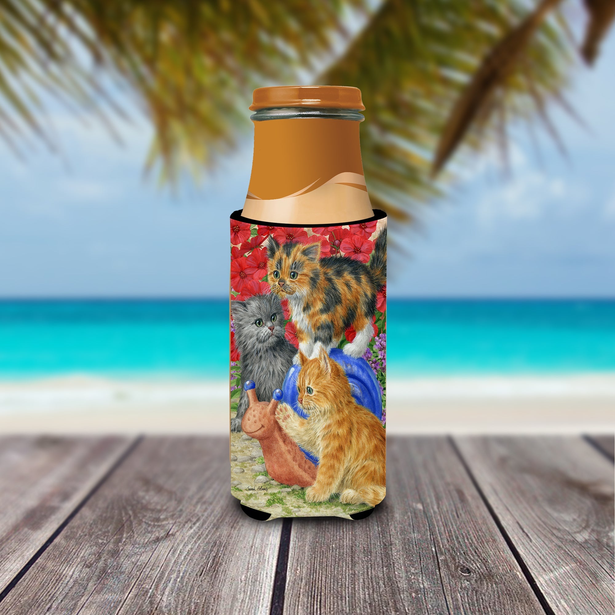Decorate your space with our Cat artwork on a Slim Can Hugger. Elevate your beverage experience with our Slim Can Huggers, uniquely designed to fit a variety of your favorite 12 oz slim cans. Perfectly suited for Michelob Ultra, Starbucks Refreshers, Heineken Light, Bud Lite Lime, Dry Soda, Coors, Resin, Vitaminwater Energy, and Perrier Cans, our huggers ensure your drink stays refreshingly cool. The feature that sets our can huggers apart is the striking full-color artwork, exclusively created by one of our talented artists. It adds a touch of individuality and style to your drink, making it easier to identify in a crowd. A unique blend of practicality and flair, these huggers are an absolute must-have at any gathering. Our can huggers are not just beautiful but also incredibly durable. The design won't fade or peel off, and they can be safely cleaned in a washing machine. These collapsible beverage insulators are easy to store and transport, making them perfect for all occasions. Enjoy your drinks in style and comfort with our exceptional Slim Can Huggers.