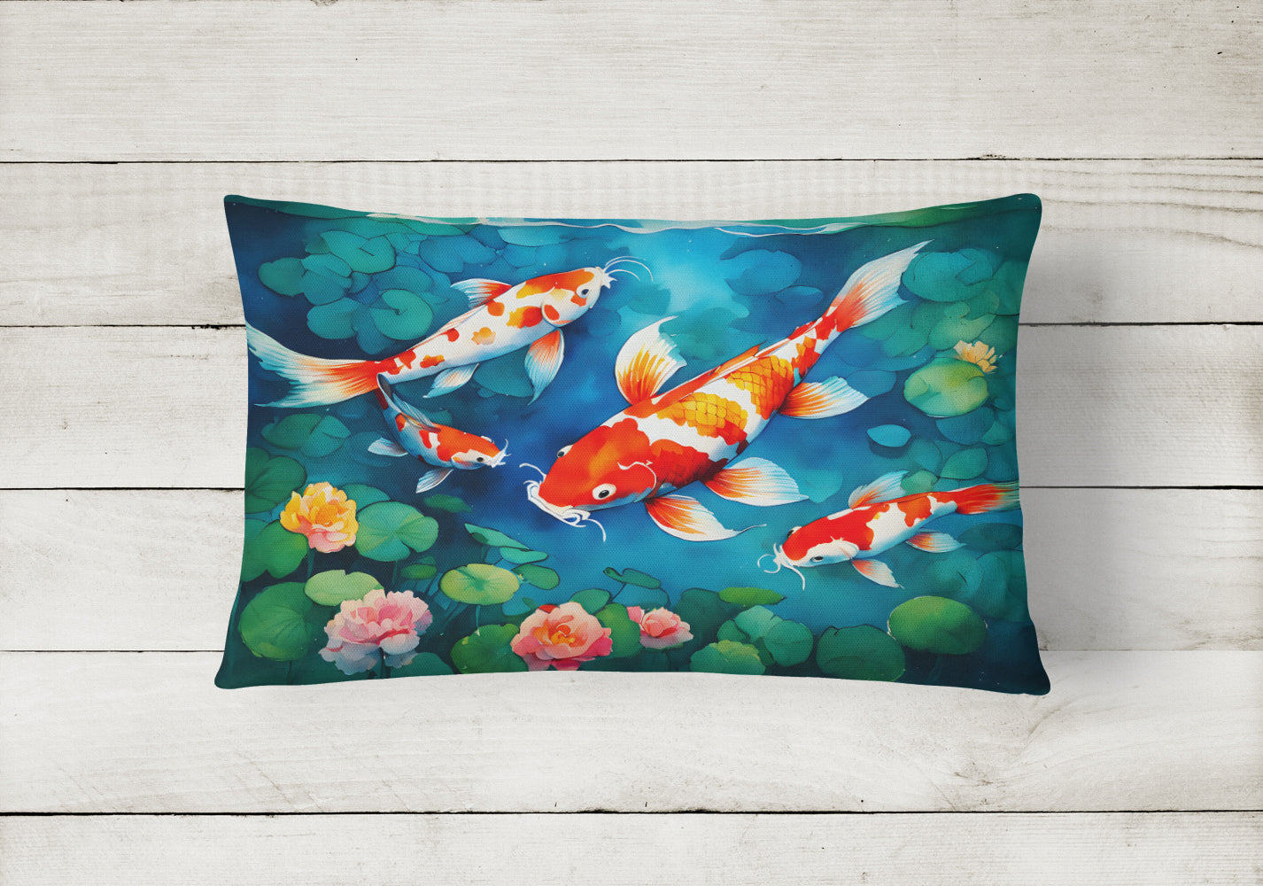 Decorate your space with our Koi Fish artwork on a Pillow. Embrace the fusion of comfort and style with Caroline's Treasures Fabric Decorative Pillow. This 12x16 inch outdoor pillow is designed to complement your patio furniture, adding a splash of color and artistry to your outdoor setting. Constructed with a 100% Polyester Fabric pillow sham filled with a plush pillow form, this cushion is as comfortable as it is durable. Our outdoor pillow utilizes a novel fabric, meticulously woven for enhanced water resistance. This soft canvas material is equally suited for your indoor couch as well as outdoor settings such as the patio, porch, or veranda. To ensure enduring vibrance, we employ colorfast dyes resistant to fading even when subjected to weather elements. The making of this pillow involves the delicate sewing together of three fabric pieces to create a sham, into which a polyester insert is carefully placed. The result is an overstuffed pillow that tenaciously holds its shape. With both the sham and the pillow insert crafted in the United States, these handmade pillows are a testament to superior local craftsmanship. Note that as these pillows are handmade, sizes may slightly vary, enhancing their unique appeal. Enjoy comfort in style with Caroline's Treasures Fabric Decorative Pillow.