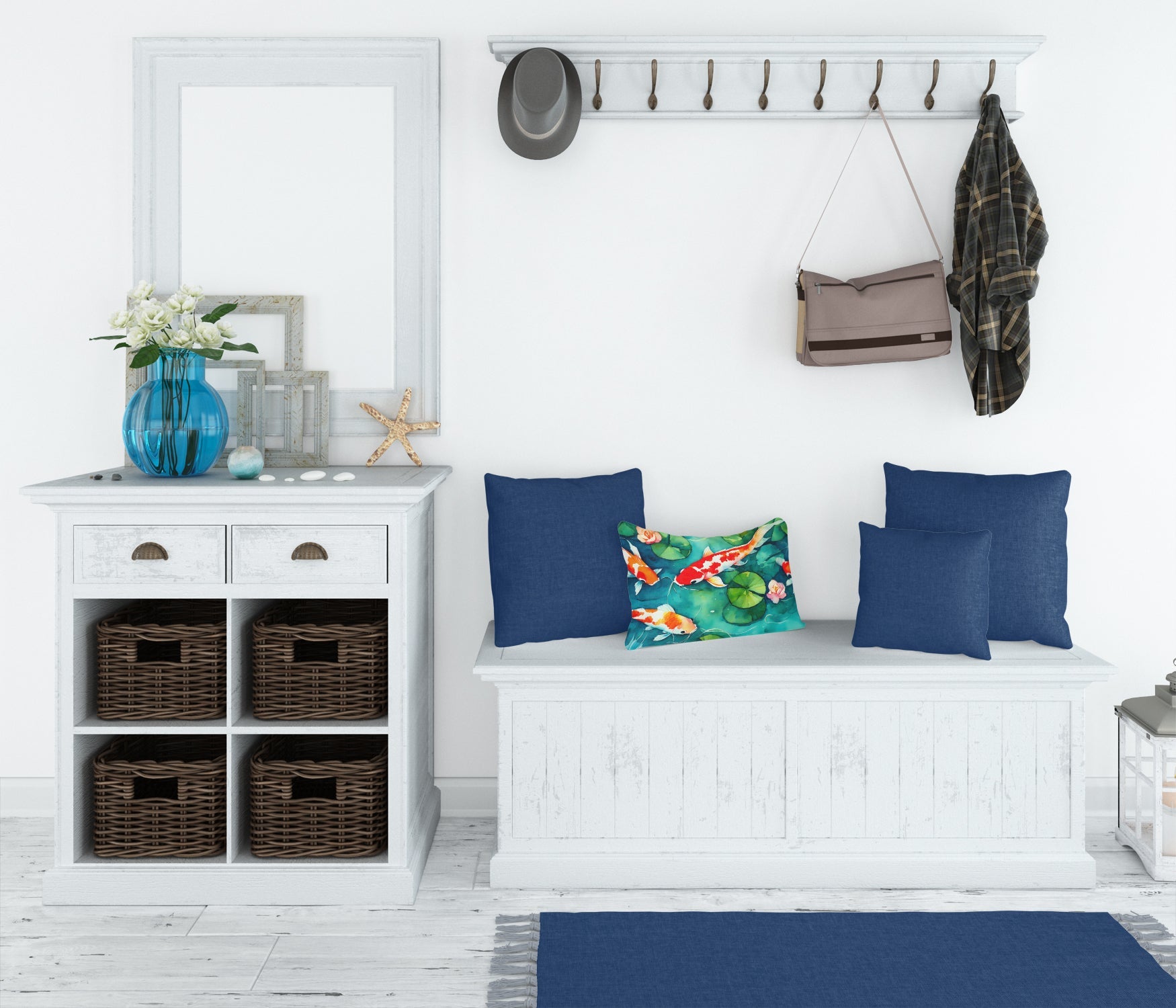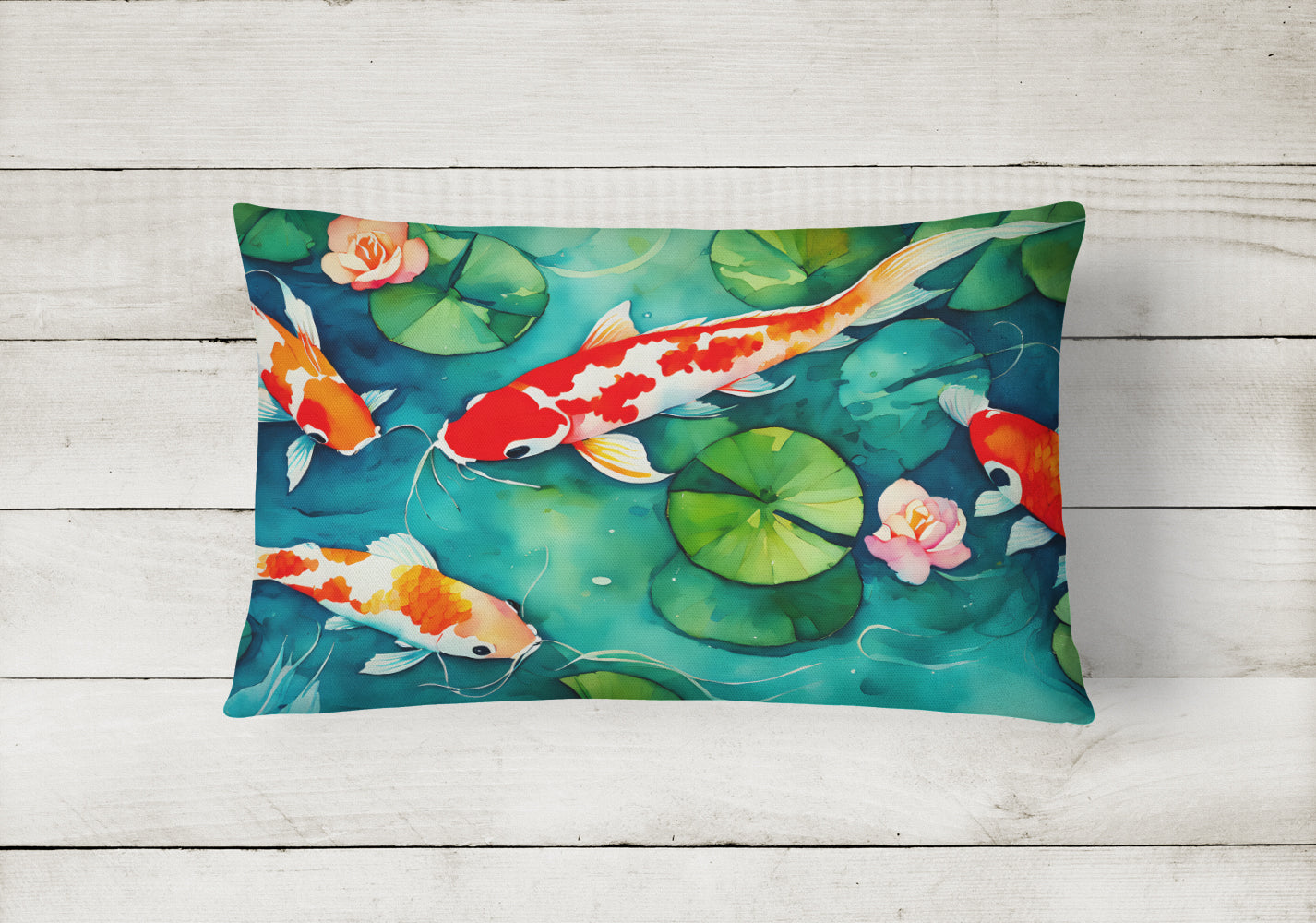 Decorate your space with our Koi Fish artwork on a Pillow. Embrace the fusion of comfort and style with Caroline's Treasures Fabric Decorative Pillow. This 12x16 inch outdoor pillow is designed to complement your patio furniture, adding a splash of color and artistry to your outdoor setting. Constructed with a 100% Polyester Fabric pillow sham filled with a plush pillow form, this cushion is as comfortable as it is durable. Our outdoor pillow utilizes a novel fabric, meticulously woven for enhanced water resistance. This soft canvas material is equally suited for your indoor couch as well as outdoor settings such as the patio, porch, or veranda. To ensure enduring vibrance, we employ colorfast dyes resistant to fading even when subjected to weather elements. The making of this pillow involves the delicate sewing together of three fabric pieces to create a sham, into which a polyester insert is carefully placed. The result is an overstuffed pillow that tenaciously holds its shape. With both the sham and the pillow insert crafted in the United States, these handmade pillows are a testament to superior local craftsmanship. Note that as these pillows are handmade, sizes may slightly vary, enhancing their unique appeal. Enjoy comfort in style with Caroline's Treasures Fabric Decorative Pillow.