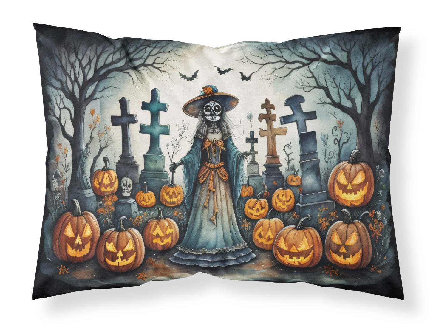 La Catrina Skeleton Spooky Halloween Fabric Standard Pillowcase – Artistic Decorative Front, White Back