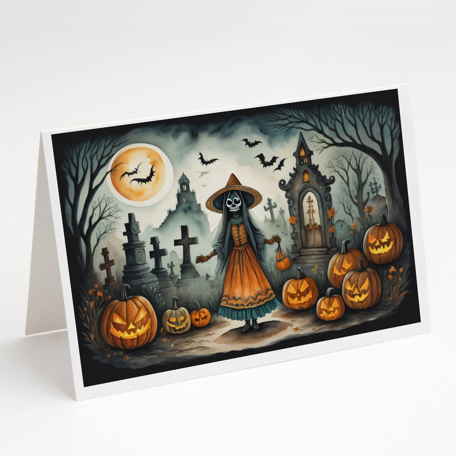 La Llorona Skeleton Spooky Halloween Greeting Cards -  Blank Note Cards – 8-Pack of Artist-Designed Cards with Envelopes