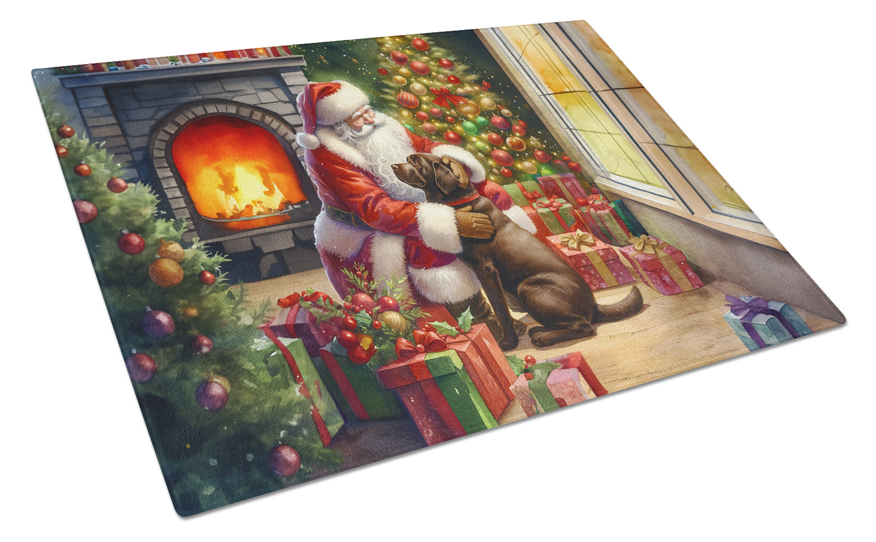 Labrador Retriever and Santa Claus Glass Cutting Boards – Durable, Decorative Kitchen Art