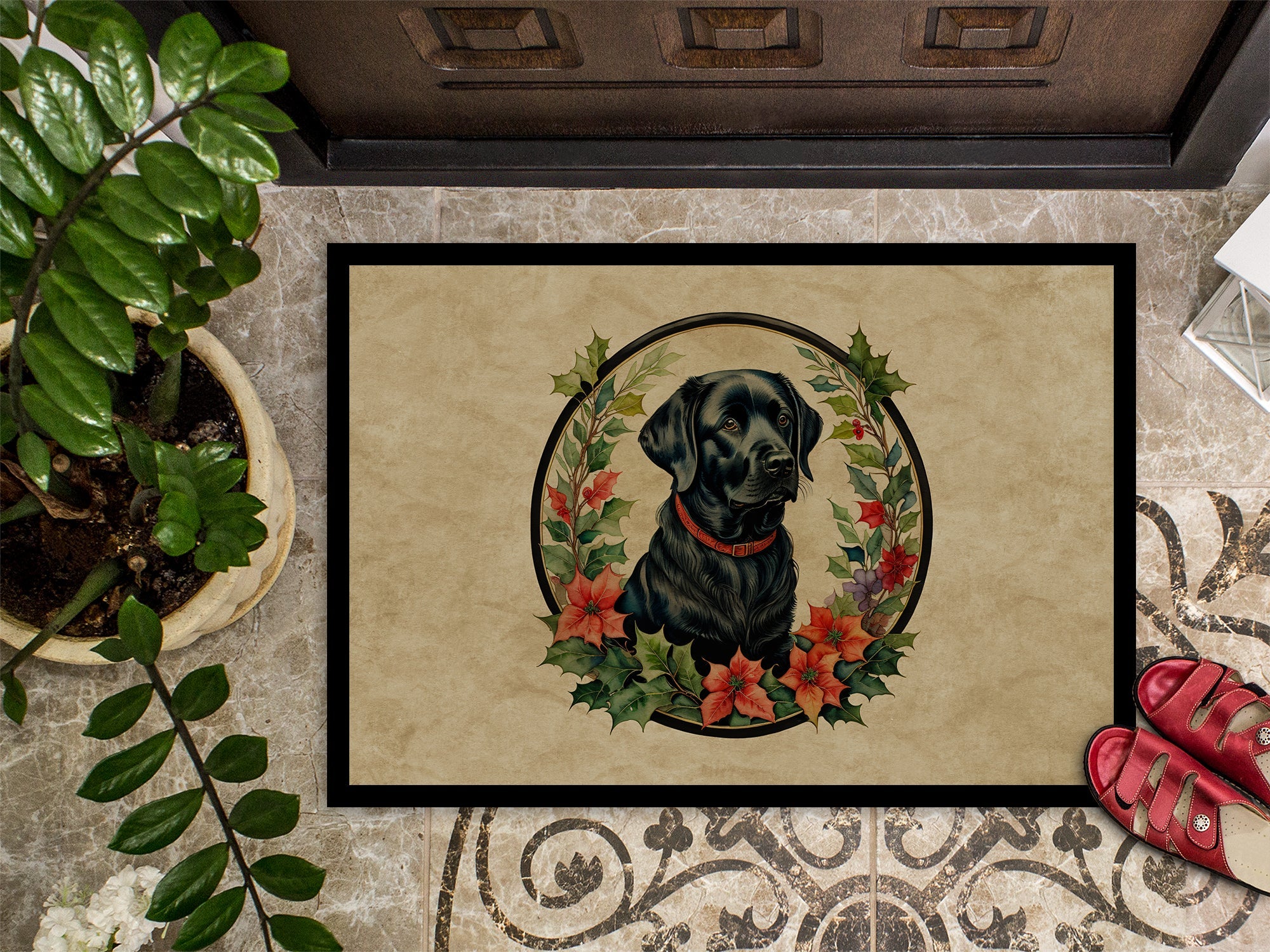 Labrador Retriever Christmas Flowers Doormat - 18X27 Indoor / Outdoor Rug | Made in USA