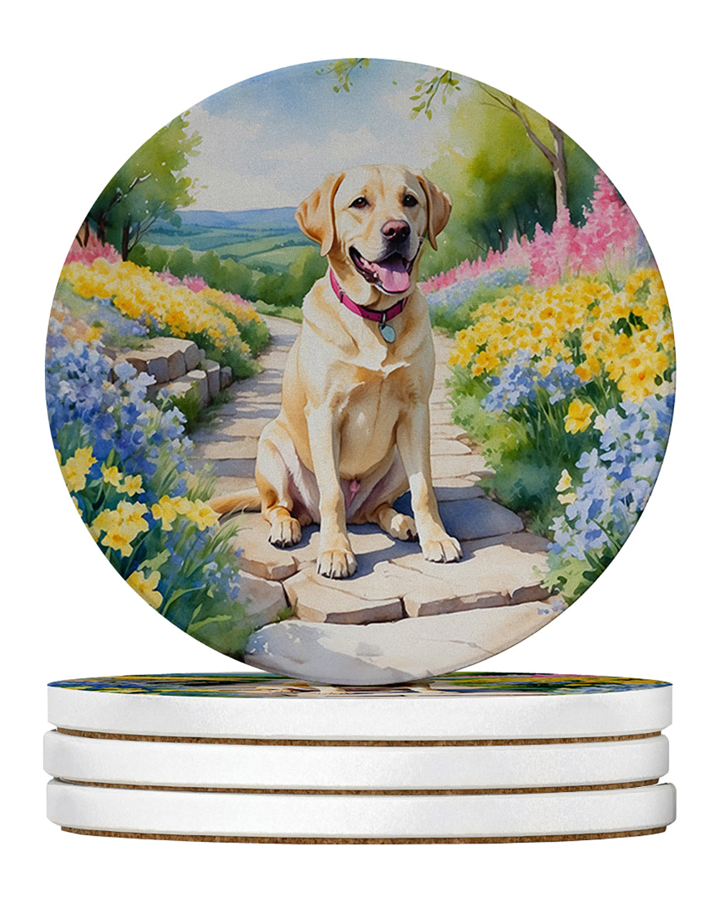 Large Sandstone Coasters Pack of 4 featuring breed specific Labrador Retriever artwork. Introducing Caroline's Treasures Large Sandstone Coasters Pack of 4, the perfect addition to your home decor. Each coaster measures nearly 4 inches and is made from absorbent sandstone with a cork backing. Designed and printed in the United States, these coasters feature artwork from Caroline's Treasures' talented artists. Protect your countertops and tables from hot and cold drink condensation with these absorbent coasters. They efficiently absorb moisture, ensuring your surfaces stay dry and clean. Choose from a wide range of designs to update and enhance your decor or give them as a thoughtful gift for any occasion. Cleaning is a breeze—simply wipe the coaster with a damp towel to remove any spills or stains. Each set comes in a brown gift box, making it ready to be wrapped for that special person in your life. These absorbent sandstone coasters also make an excellent housewarming gift, providing both practicality and style. Celebrate birthdays, Mother's Day, Father's Day, Thanksgiving, Christmas, Teacher's Appreciation Day, or simply show someone you care with these versatile and charming coasters. Caroline's Treasures Large Sandstone Coasters Pack of 4 is the perfect happy gift for any occasion.