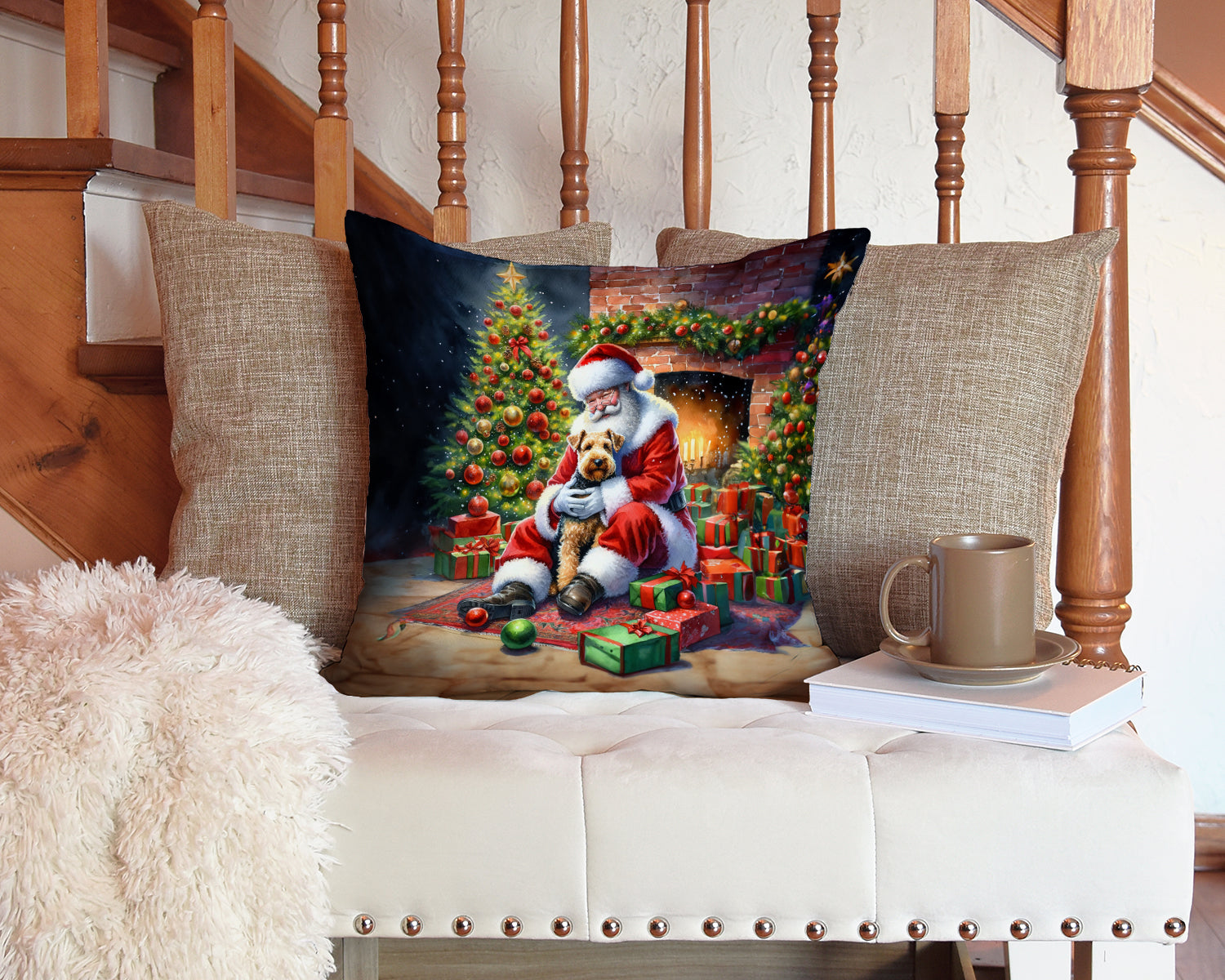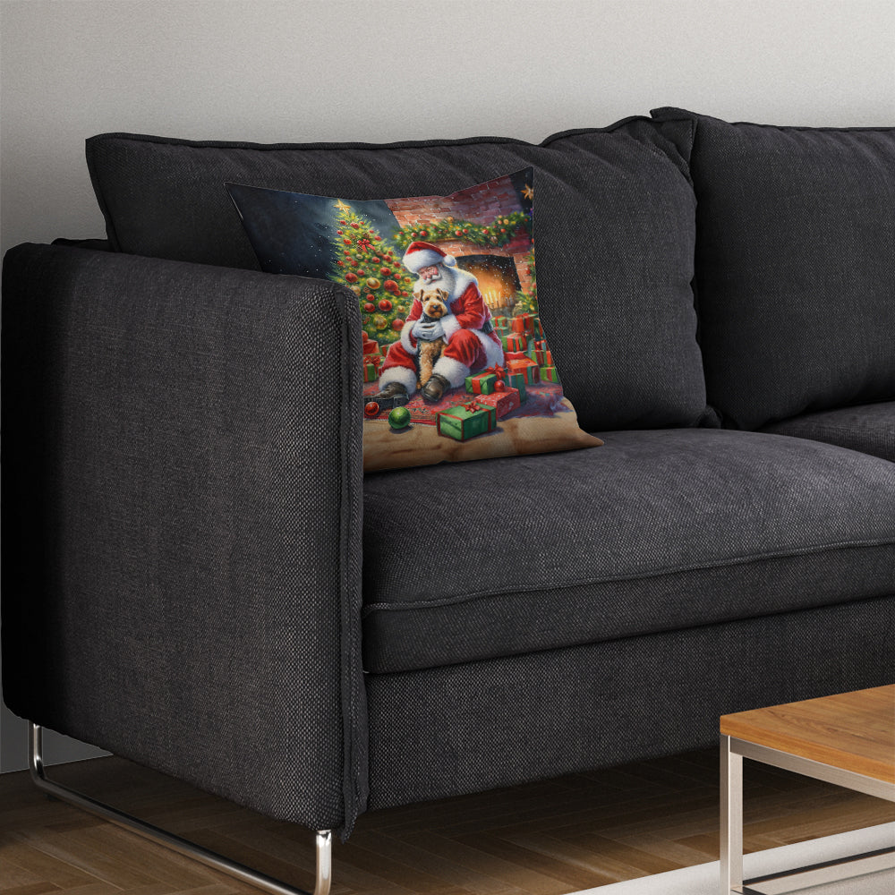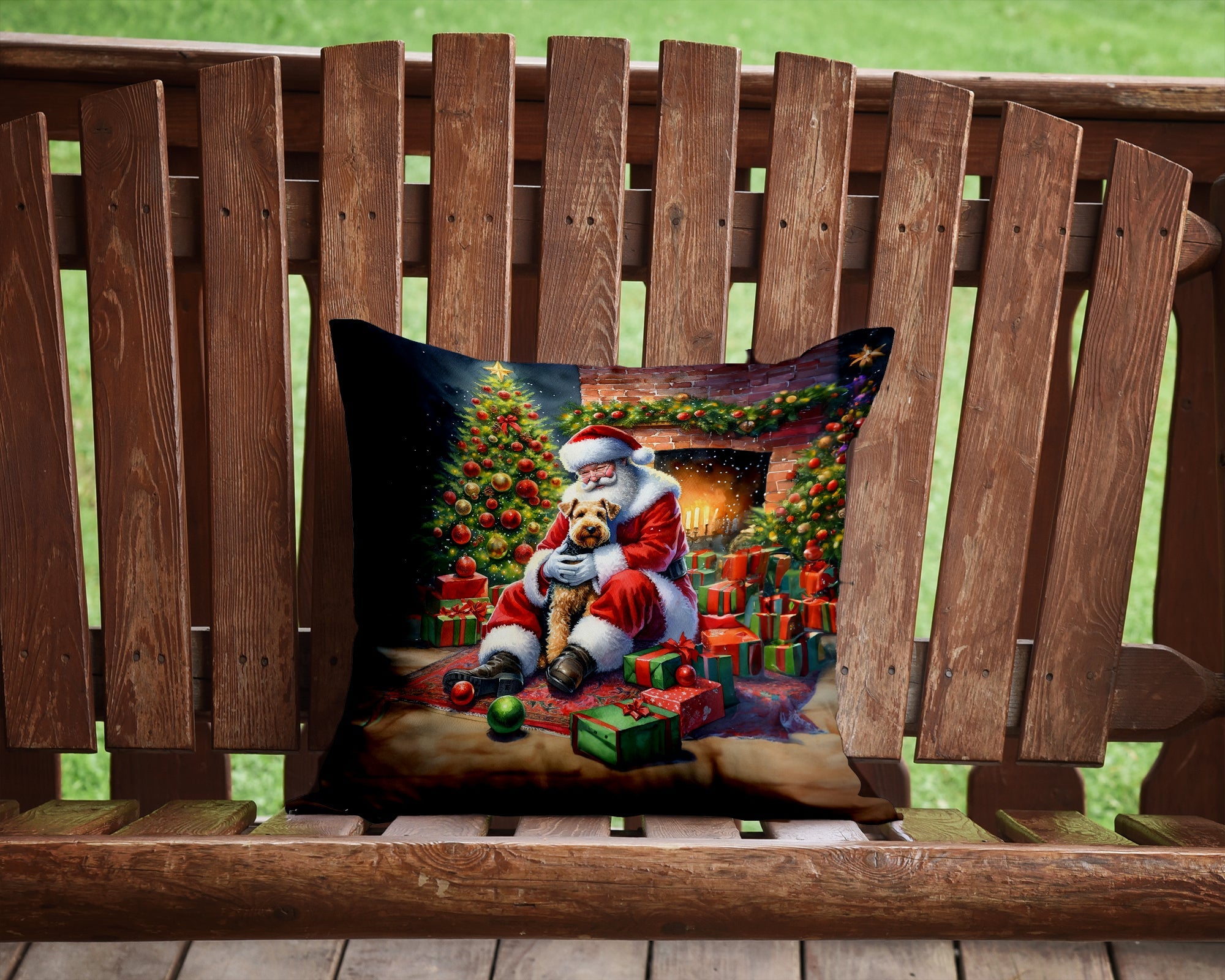 Throw Pillow featuring breed specific Lakeland Terrier artwork. Celebrate Christmas with this Christmas Pillow. Add a touch of vibrancy and comfort to your outdoor seating with Caroline's Treasures Fabric Decorative Pillow. Measuring approximately 14 inches by 14 inches, this outdoor pillow is crafted to elevate the appeal of your patio furniture, infusing it with vivid color and artistic flair. The pillow includes a 100% Polyester Fabric sham filled with a quality pillow form to provide superior comfort. Innovatively made from our brand new material, specifically woven for its water resistance, this pillow is designed for durability. The soft canvas fabric offers versatility in use, fit for your indoor couch or your outdoor patio, porch, or veranda. The fabric is dyed with colorfast dyes built for resilience against weather conditions, ensuring the pillow retains its beauty over time. Constructed by sewing three fabric pieces to create a sham, the polyester insert is then nestled inside to form the pillow, resulting in an overstuffed pillow that maintains its shape. Both the sham and the pillow insert are proudly made in the United States. As the pillows are handcrafted, there may be minor variations in size, further enhancing their unique charm. Experience comfort in style with Caroline's Treasures Fabric Decorative Pillow.