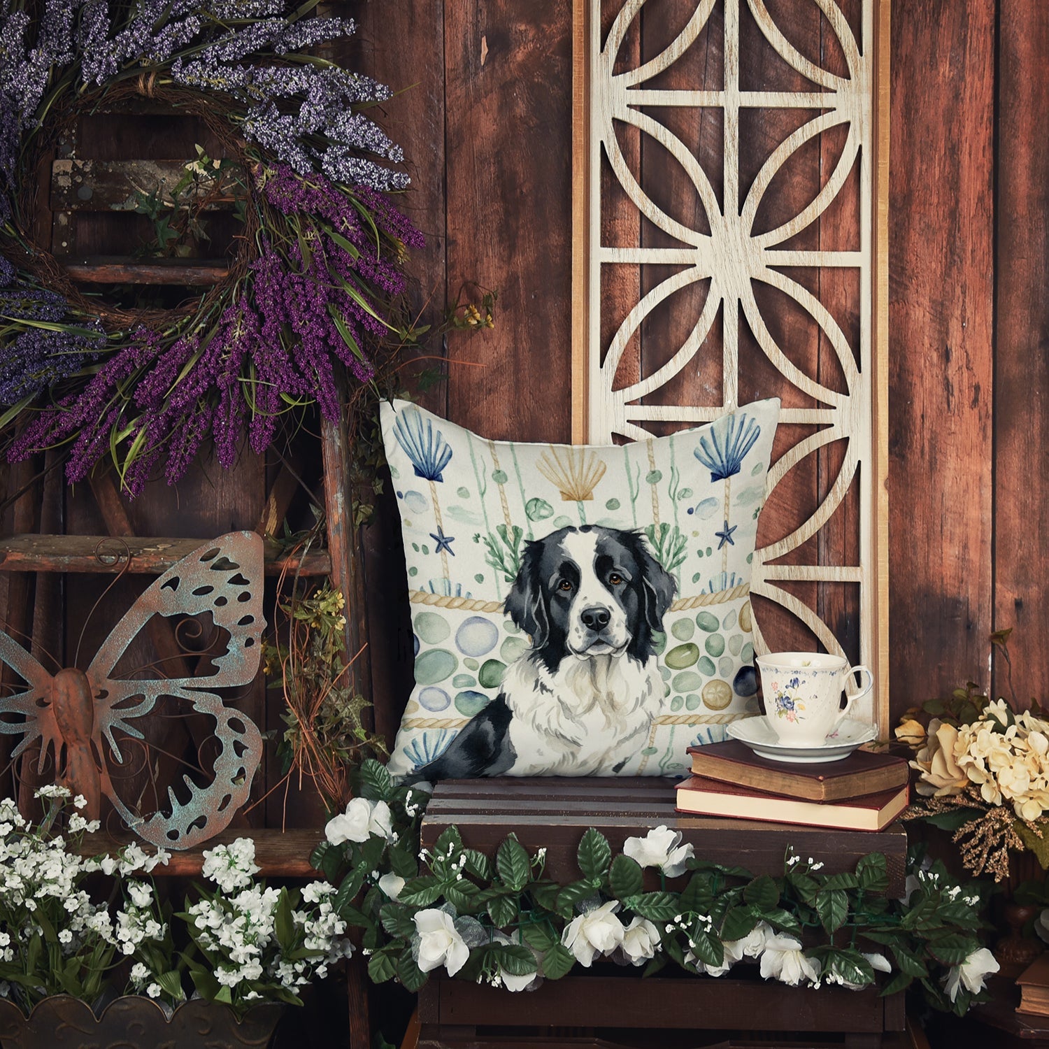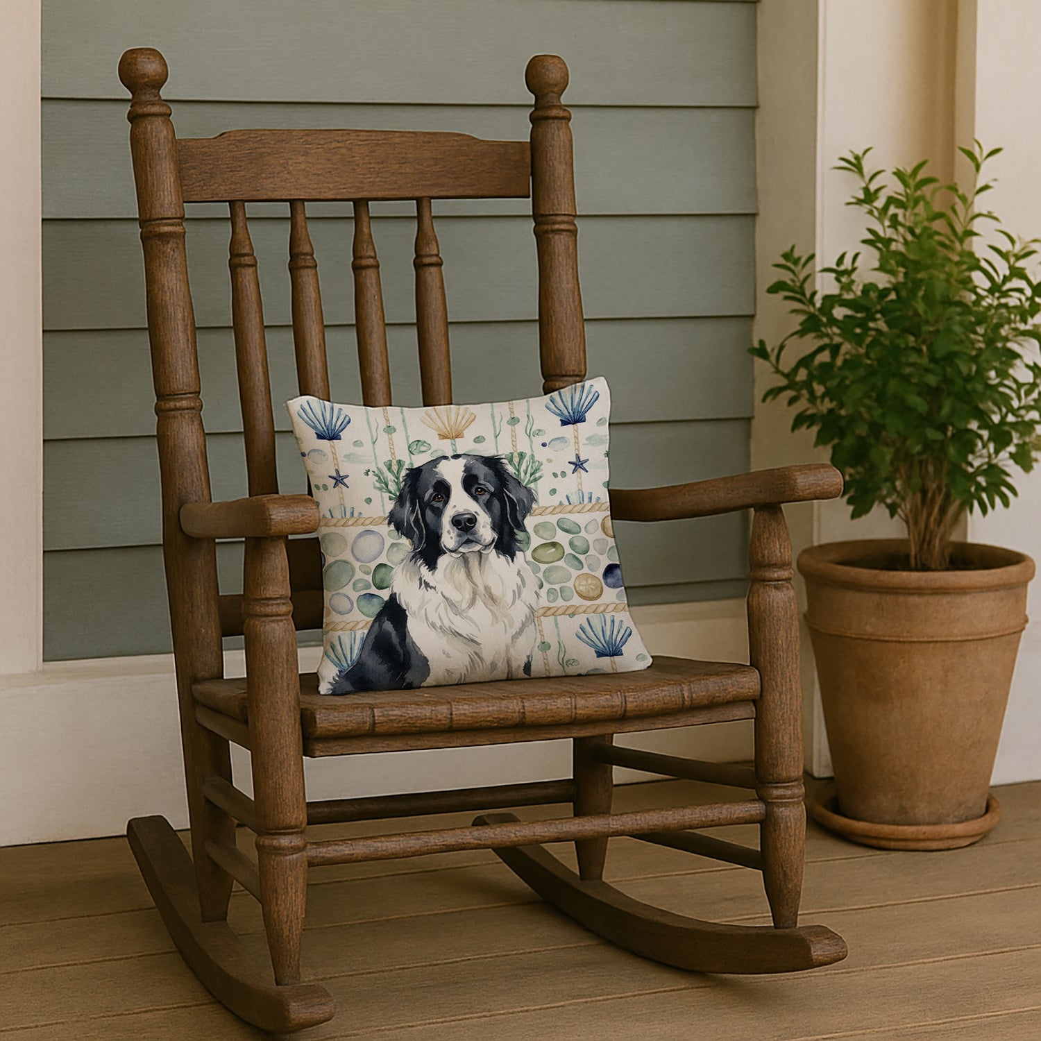 Landseer Newfoundland Coastal Sea Glass Throw Pillow