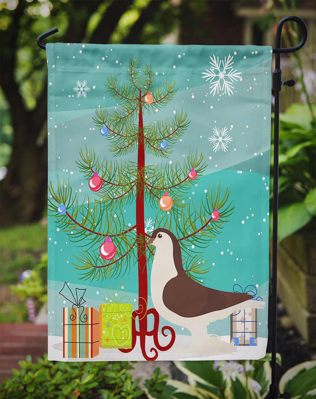 Decorate your space with our Christmas Large Pigeon artwork on a Garden Flag. Enhance the beauty of your garden, patio, or yard with Caroline's Treasures Decorative Garden Flag, proudly made in the USA. Crafted from two pieces of thick, double-sided polyester fabric, this 2-ply garden flag is designed to withstand various weather conditions, making it water-resistant and weatherproof. Featuring correctly readable words on both sides, this garden flag offers a delightful visual experience from any angle. With its heavier weight, it stands out among other garden flags, ensuring stability and durability even in wind, rain, and snow. Measuring approximately 11 1/4 inches by 15 1/2 inches, this flag allows you to personalize your outdoor decor. It comes with a 1 1/2-inch sleeve sewn in, allowing easy attachment to any standard garden flag stand or garden size porch hanger (sold separately). Make a statement in your outdoor space with Caroline's Treasures Decorative Garden Flag, a vibrant and high-quality flag that adds color and personality to your surroundings. Proudly made in the USA, it's a symbol of quality craftsmanship and attention to detail.