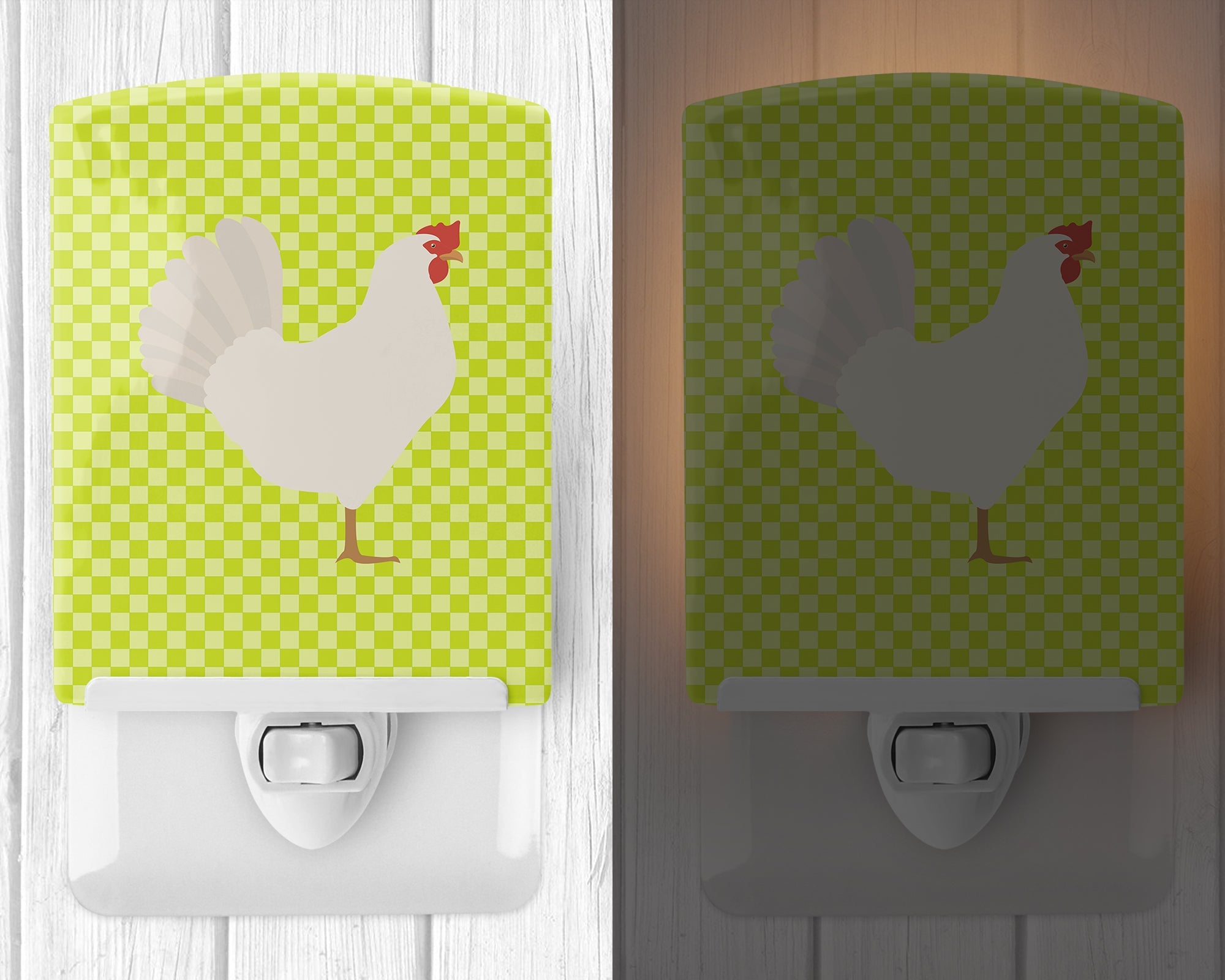 Decorate your space with our Leghorn Chicken artwork on a Night Light. Introduce a splash of artistic flair and subtle illumination to your space with the Decorative Ceramic Night Light from Caroline's Treasures. Perfect for any room, this night light seamlessly blends functionality with an aesthetic appeal, offering a stylish solution to brighten up dark corners of your home or office. Boasting a six-inch high by four-inch wide ceramic tile at the front, it showcases vivid, full-color artwork from distinguished artists, transforming a simple utility into a vibrant art piece. The artwork is securely encased in a robust metal holder, ensuring durability and longevity. Two screws are provided to firmly affix the tile into the holder. The holder extends three inches deep, housing an included bulb that emits a soft, welcoming glow. This product meets all safety standards, as evidenced by its UL approval. Proudly made in the United States from imported components, this Decorative Ceramic Night Light is not just a functional device; it's a statement piece that enhances the ambiance of your surroundings.