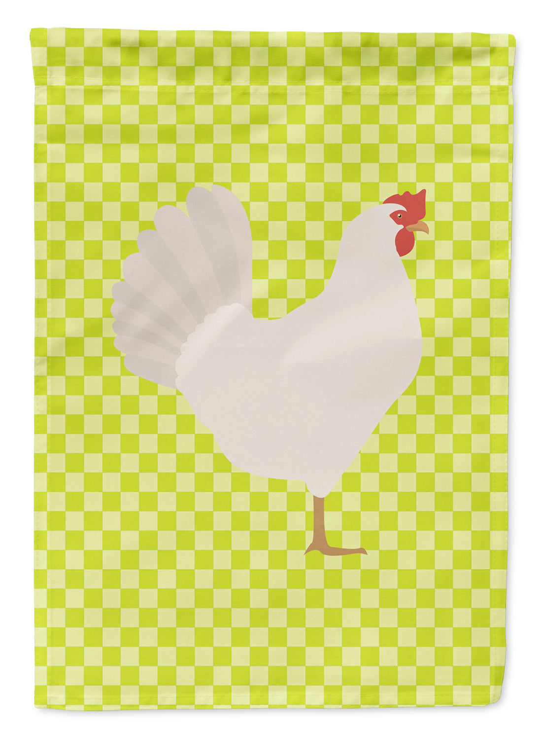 Decorate your space with our Leghorn Chicken artwork on a Garden Flag. Enhance the beauty of your garden, patio, or yard with Caroline's Treasures Decorative Garden Flag, proudly made in the USA. Crafted from two pieces of thick, double-sided polyester fabric, this 2-ply garden flag is designed to withstand various weather conditions, making it water-resistant and weatherproof. Featuring correctly readable words on both sides, this garden flag offers a delightful visual experience from any angle. With its heavier weight, it stands out among other garden flags, ensuring stability and durability even in wind, rain, and snow. Measuring approximately 11 1/4 inches by 15 1/2 inches, this flag allows you to personalize your outdoor decor. It comes with a 1 1/2-inch sleeve sewn in, allowing easy attachment to any standard garden flag stand or garden size porch hanger (sold separately). Make a statement in your outdoor space with Caroline's Treasures Decorative Garden Flag, a vibrant and high-quality flag that adds color and personality to your surroundings. Proudly made in the USA, it's a symbol of quality craftsmanship and attention to detail.