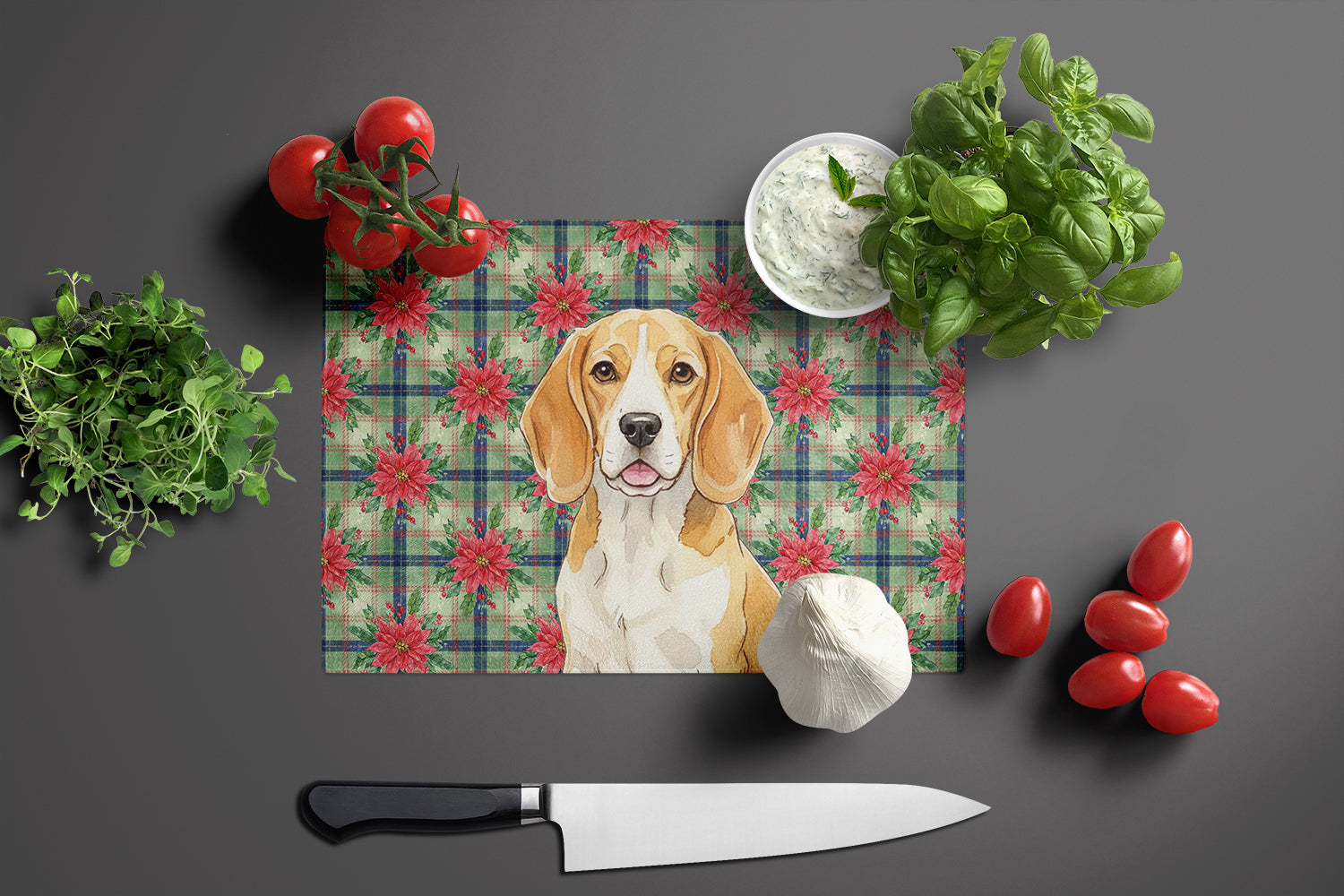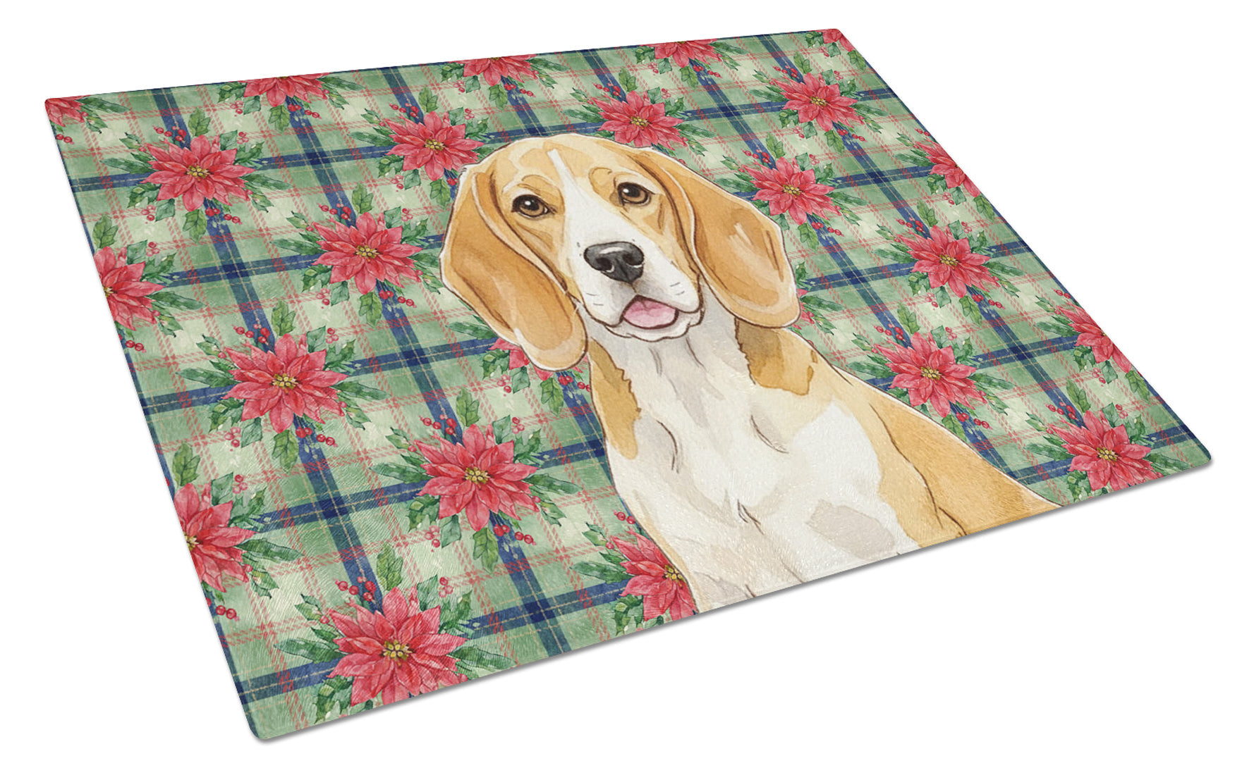 Glass Cutting Board featuring breed specific Beagle artwork. Celebrate Christmas with this Christmas Cutting Board. Introduce your kitchen to the vibrant, large Decorative Glass Cutting Board from Caroline's Treasures. Crafted from resilient tempered glass, this board is not only a utilitarian necessity but also a colorful art piece. With its generous dimensions of 15 inches in height and 11 inches in length, it offers ample space for all your cutting needs. Every piece showcases captivating artwork from distinguished artists, bringing an aesthetic edge to your kitchen. Beyond its attractive design, this cutting board ensures your countertop stays pristine and unscathed, owing to its heat-resistant properties. Engineered with user convenience in mind, it features non-skid feet for stability, and rounded corners for additional safety. Its robust construction renders it virtually unbreakable, guaranteeing longevity. The board comes with protective feet bumpers, maintaining its position during use. This product is recommended to be hand washed only. Proudly printed and assembled in the United States, this cutting board exemplifies superior craftsmanship. With Caroline's Treasures' Decorative Glass Cutting Board, you're investing in a blend of functionality and artistic flair.