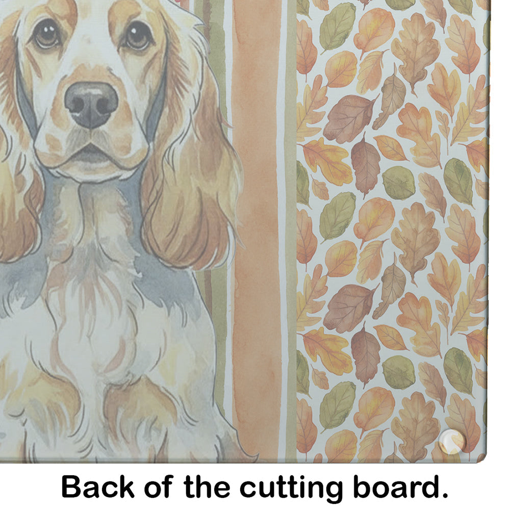 Glass Cutting Board featuring breed specific English Cocker Spaniel artwork. Celebrate Thanksgiving with this Thanksgiving Cutting Board. Introduce your kitchen to the vibrant, large Decorative Glass Cutting Board from Caroline's Treasures. Crafted from resilient tempered glass, this board is not only a utilitarian necessity but also a colorful art piece. With its generous dimensions of 15 inches in height and 12 inches in length, it offers ample space for all your cutting needs. Every piece showcases captivating artwork from distinguished artists, bringing an aesthetic edge to your kitchen. Beyond its attractive design, this cutting board ensures your countertop stays pristine and unscathed, owing to its heat-resistant properties. Engineered with user convenience in mind, it features non-skid feet for stability, and rounded corners for additional safety. Its robust construction renders it virtually unbreakable, guaranteeing longevity. The board comes with protective feet bumpers, maintaining its position during use. This product is recommended to be hand washed only. Proudly printed and assembled in the United States, this cutting board exemplifies superior craftsmanship. With Caroline's Treasures' Decorative Glass Cutting Board, you're investing in a blend of functionality and artistic flair.