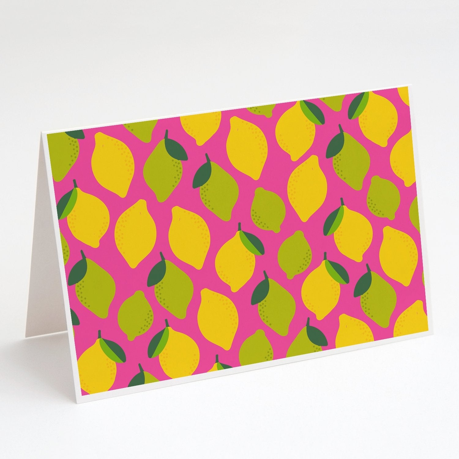 Lemons and Limes on Pink Greeting Cards - Blank Note Cards – 8-Pack of Artist-Designed Cards with Envelopes